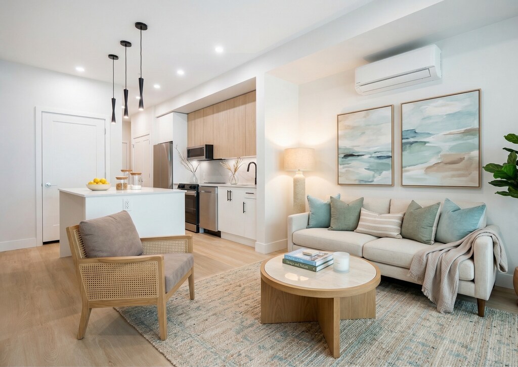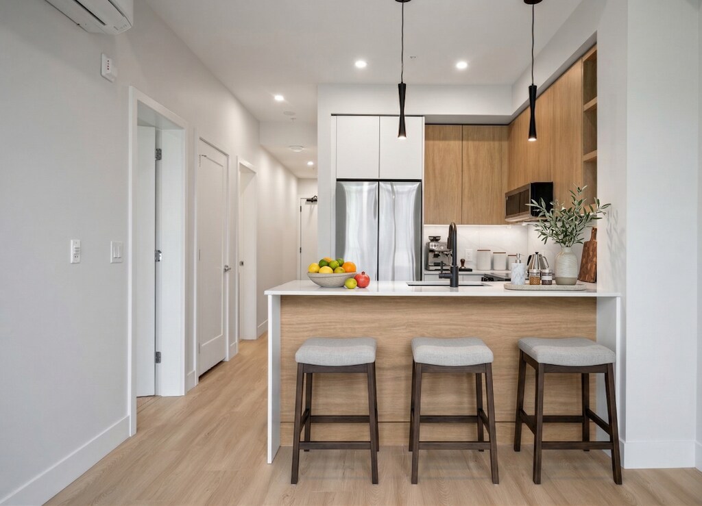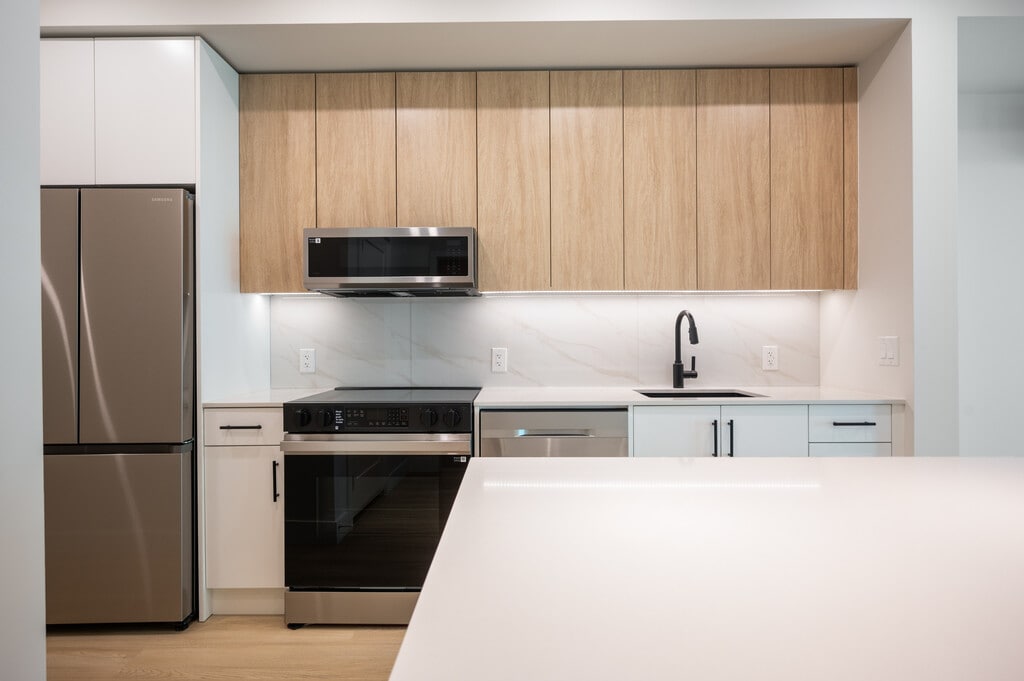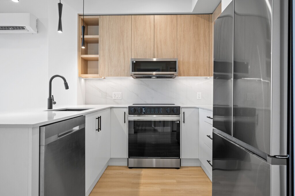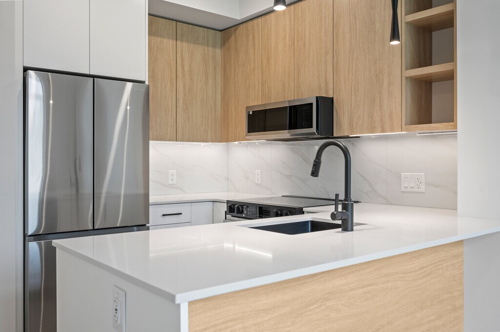 Renting a home at Sage offers a sense of pride. Inside the homes you'll be greeted with the type of quality that never compromises on the essentials—air conditioning, durable quartz countertops, and reliable Samsung appliances are all included to provide the comfort and functionality you're looking for. A light and modern Scandinavian inspired interior theme sets the stage for you to personalize, a canvas that's yours to shape. Every home has a foundation of design excellence, boasting 9' ceilings, durable laminate flooring, and open-concept layouts. • Open Concept living • Includes a 78 Sq ft Lumon retractable solarium enclosure, with a heater for year round living • Light modern Scandinavian design scheme • High performance Air Conditioning • Durable laminate flooring • 9' ceiling • Fresh white lower cabinets with complementary light oak laminate upper cabinets • Large marble vein polished porcelain tile backsplash • Durable quartz countertops • Matte black sink with spray faucet • In Suite Laundry • Reliable Samsung Appliances • Grand Lobby entrance with Key fob entry system for all buildings and parkade for security • Underground Parking and storage lockers • No smoking rentals *Photos may not be of exact unit*