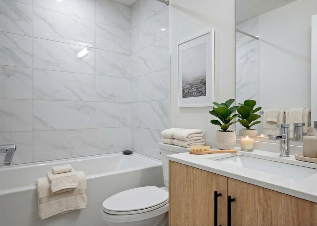 Renting a home at Sage offers a sense of pride. Inside the homes you'll be greeted with the type of quality that never compromises on the essentials—air conditioning, durable quartz countertops, and reliable Samsung appliances are all included to provide the comfort and functionality you're looking for. A light and modern Scandinavian inspired interior theme sets the stage for you to personalize, a canvas that's yours to shape. Every home has a foundation of design excellence, boasting 9' ceilings, durable laminate flooring, and open-concept layouts. • Open Concept living • Includes a 106Sq ft Lumon retractable solarium enclosure, with a heater for year round living • Light modern Scandinavian design scheme • High performance Air Conditioning • Durable laminate flooring • 9' ceiling • Fresh white lower cabinets with complementary light oak laminate upper cabinets • Large marble vein polished porcelain tile backsplash • Durable quartz countertops • Matte black sink with spray faucet • In Suite Laundry • Reliable Samsung Appliances • Semi-frameless glass shower enclosure in ensuites (Select Homes) • Grand Lobby entrance with Key fob entry system for all buildings and parkade for security • Underground Parking and storage lockers • No smoking rentals *Photos may not be of exact unit*