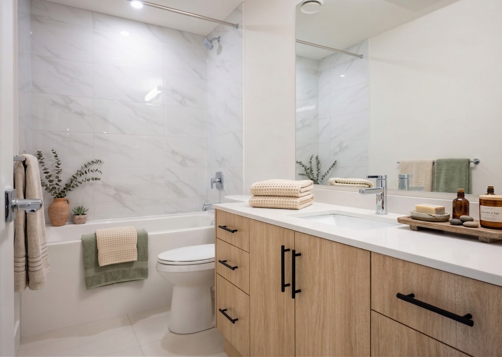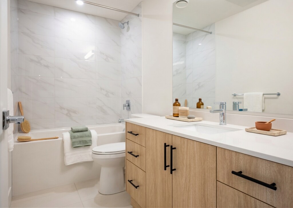 Renting a home at Sage offers a sense of pride. Inside the homes you'll be greeted with the type of quality that never compromises on the essentials—air conditioning, durable quartz countertops, and reliable Samsung appliances are all included to provide the comfort and functionality you're looking for. A light and modern Scandinavian inspired interior theme sets the stage for you to personalize, a canvas that's yours to shape. Every home has a foundation of design excellence, boasting 9' ceilings, durable laminate flooring, and open-concept layouts. • Open Concept living • Includes a Lumon retractable solarium enclosure, with a heater for year round living • Light modern Scandinavian design scheme • High performance Air Conditioning • Durable laminate flooring • 9' ceiling • Fresh white lower cabinets with complementary light oak laminate upper cabinets • Large marble vein polished porcelain tile backsplash • Durable quartz countertops • Matte black sink with spray faucet • In Suite Laundry • Reliable Samsung Appliances • Semi-frameless glass shower enclosure in ensuites (Select Homes) • Grand Lobby entrance with Key fob entry system for all buildings and parkade for security • Underground Parking and storage lockers • No smoking rentals