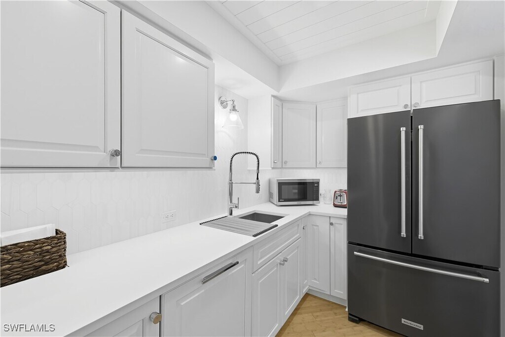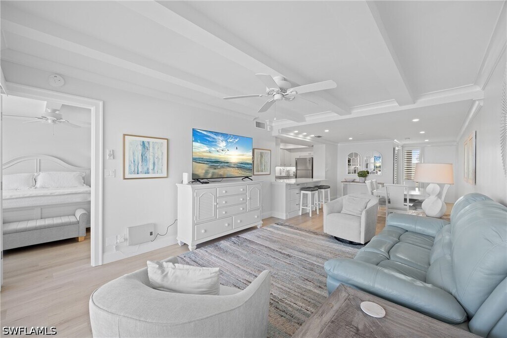 Stunning 2BR/2BA beachfront residence on the 5th floor of the Naples Continental Club in the heart of the Moorings. West-facing with unobstructed Gulf of Mexico views and direct beach access just steps from your door. Recently updated kitchen features a waterfall quartz countertop,modern appliances,and an open layout. King bed in the primary suite,two twins in the guest room. Private lanai with elevated panoramic sunset views above the treeline. In-building washer and dryer. Minutes from Venetian Village,Waterside Shops,and 5th Avenue South. One of Naples' most iconic beachfront addresses.