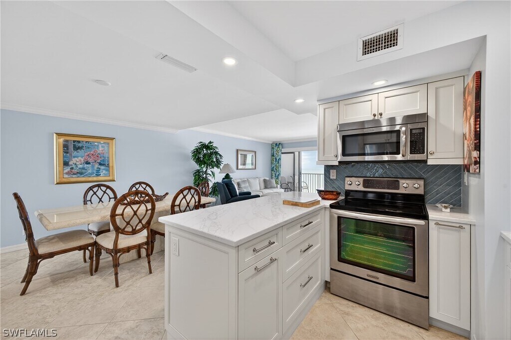 Welcome to this beautifully updated third-floor,2-bedroom,2-bath beachfront condominium offering sweeping southwestern views of the Gulf of Mexico. Enjoy direct beach access just steps from your door and panoramic vistas from your private balcony,overlooking stunning sunsets and a newly renovated resort-style pool deck. The bright and open floor plan features coastal-inspired finishes,tray ceilings,tile flooring throughout,and a modern kitchen with white cabinetry,quartz countertops,updated appliances,and a new stainless-steel wine cooler. The luxurious primary suite includes balcony access and a remodeled en-suite bath.