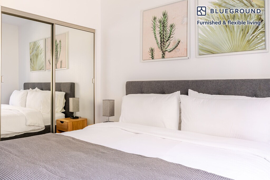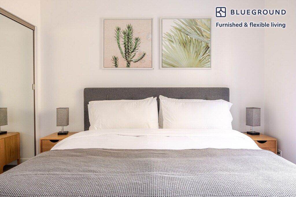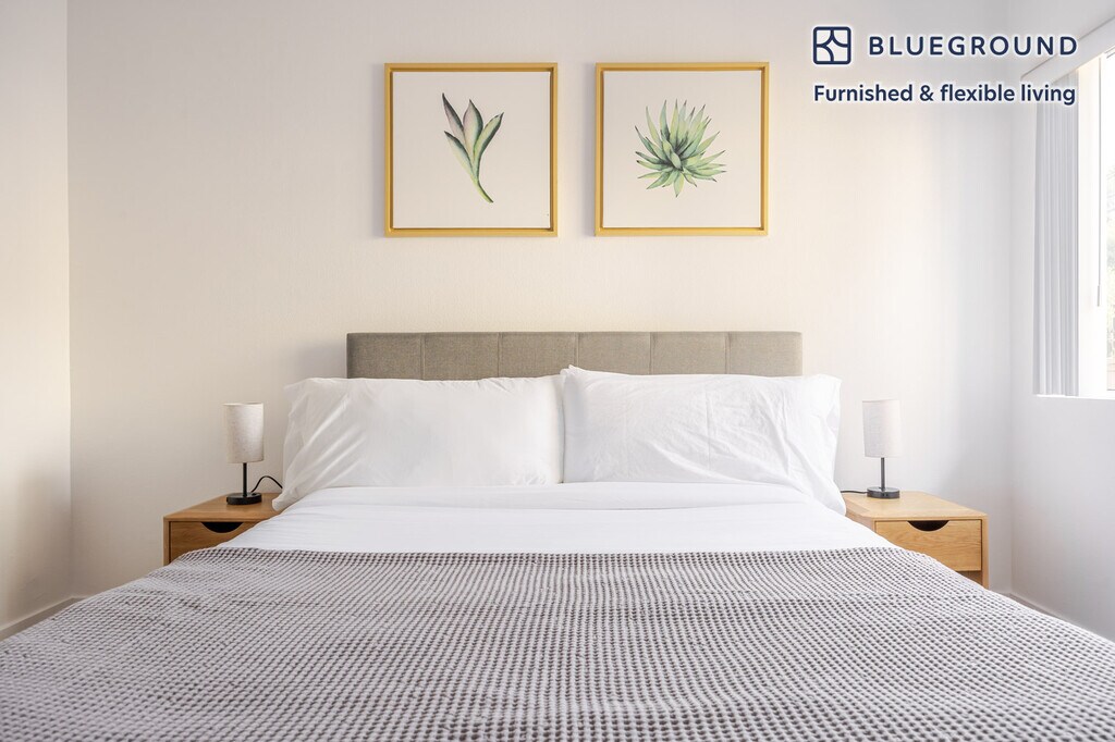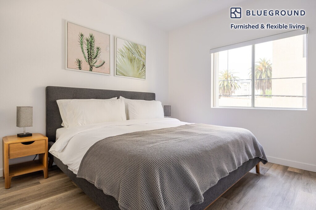Show up and start living from day one in Los Angeles with this charming two bedroom Blueground apartment. You’ll love coming home to this thoughtfully furnished, beautifully designed, and fully equipped La Brea home. (ID #LAX1313) The advertised rate of $2,450/month is the lowest available price, based on a 1 month(s) and 29 day(s) stay with a move-in date of December 5, 2025. If you’re looking for a 1-year stay, the rate is $2,800/month. Rates vary depending on the duration of stay, season, and other parameters. For exact pricing and additional pricing components, please visit our website and enter your desired move-in and move-out dates. The rate is applicable when billed upfront; it can be higher if billed in multiple payments. Brokers are welcome to reach out. Were you looking for an unfurnished lease? Try Blueground instead and upgrade from unfurnished to furnished living: - Furnished at rates comparable to unfurnished - No setup or furniture costs - save thousands - Move-in ready - save time, just bring your suitcase Designed with you in mind Thoughtfully designed with bespoke finishes, modern furnishings, and a fully equipped kitchen, you’ll enjoy that “I’m home” feeling with this Blueground apartment. Whether you’re lounging in your charming living room streaming the latest and greatest entertainment on the smart TV or premium wireless speaker, or getting some well-earned rest on the superior quality mattress with luxury linens, you’ll fall in love with everything this La Brea apartment has to offer. Sleeping arrangements King Bed, 70.8in/180cm Queen Bed, 63in/160cm Amenities Building amenities unique to this two bedroom apartment include an on-site: - Dryer in building - Elevator - Washing machine in building - Parking - Pets allowed - Rooftop BBQ Arrival and ongoing support The entire apartment is yours to enjoy! Throughout your stay, you’ll have access to our Client Experience team through the Blueground App. You can schedule additional cleanings, submit maintenance requests, and view our neighborhood recommendations with just a few taps. We’ll share all details upon confirmation of your stay. Other things to note Building amenities may have an extra cost. This Blueground apartment has flexible lease options, allowing you to book it for one month, a year, or more. Pets are welcome, though weight limits and breed restrictions apply and may incur fees. Parking is offered based on availability and is subject to a fee. We take great pride in ensuring every photo displayed is shot in our own units with our actual furnishings. That said, we regularly refresh our decor and furniture arrangement, which may differ from what’s pictured. [GO]
