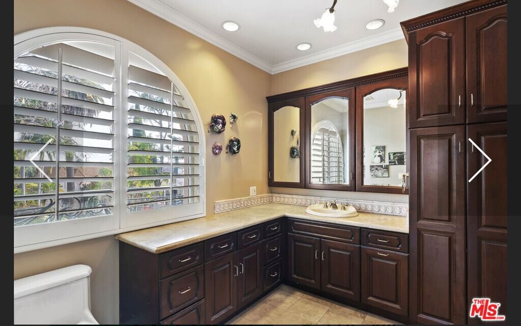 A newly renovated spacious bright Mediterranean-style villa set in the heart of Beverly Hills. Beautiful 2-story 4 bed/4.5 bath spacious home with stunning curb appeal, designed with an ideal spacious floor plan, perfect for entertaining. Enclosed front yard with brick hardscape and driveway. Formal entry with high ceilings closet and powder room. Living room with fireplace and built-in bar opens to large formal dining room overlooking front yard. Family room with wall of built-ins & desk/office area opening to kitchen and sliding door to backyard with beautiful brick patio and palm tree landscape. Chef's kitchen includes granite countertops, butler's pantry with 2nd sink, stainless steel appliances including double ovens and gas range top, and separate breakfast room overlooking backyard. 1 bedroom with ensuite full bath downstairs with separate entrance, and 3 additional bedrooms upstairs including oversized primary suite with large custom finished closet, sitting area and spa-like bathroom with separate tub and shower, and 2 separate private bathrooms/sinks. 2 laundry areas upstairs and 2 additional bedrooms with ensuite full bathrooms. Additional features include dual pane windows, dual zoned ac/heat, 2 large walk-in storage closets upstairs, crown molding and plantation shutters throughout, large skylight in hallway. Gated driveway. This is a gorgeous home in a prime area of Beverly Hills with easy access to the best schools, shopping and restaurants Beverly Hills has to offer. *Fully furnished option available if needed. MLS# 25581361
