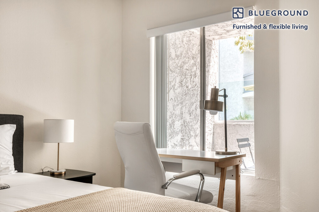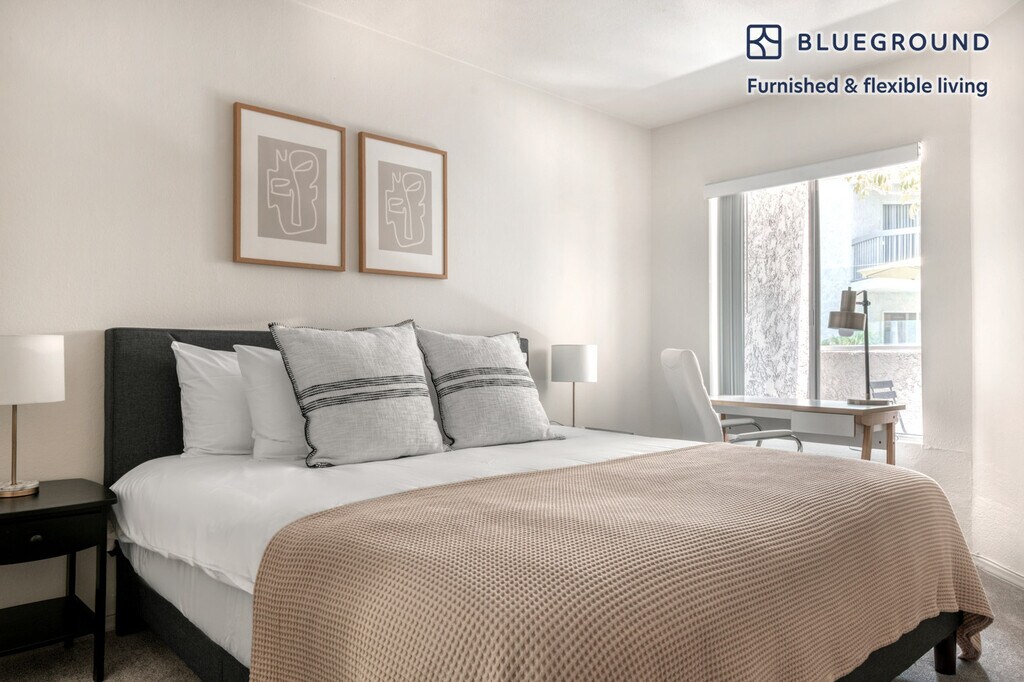 Show up and start living from day one in Pasadena with this pretty one bedroom Blueground apartment. You’ll love coming home to this thoughtfully furnished, beautifully designed, and fully equipped Pasadena home. (ID #LAX1391) The advertised rate of $2,040/month is the lowest available price, based on a 1 month(s) and 2 day(s) stay with a move-in date of December 10, 2025. If you’re looking for a 1-year stay, the rate is $2,980/month. Rates vary depending on the duration of stay, season, and other parameters. For exact pricing and additional pricing components, please visit our website and enter your desired move-in and move-out dates. The rate is applicable when billed upfront; it can be higher if billed in multiple payments. Brokers are welcome to reach out. Were you looking for an unfurnished lease? Try Blueground instead and upgrade from unfurnished to furnished living: - Furnished at rates comparable to unfurnished - No setup or furniture costs - save thousands - Move-in ready - save time, just bring your suitcase Designed with you in mind As with any Blueground apartment, you’ll find a thoughtfully designed space complete with beautiful furniture and a fully equipped kitchen in this one bedroom property. And, thanks to our superior quality mattresses, luxury linens, and towels, you can relax knowing you’ll always feel comfortably at home. When you’re ready for some fun, you can take in the Pasadena vibes or bring the entertainment to you with the premium wireless speaker or smart TV. This apartment also offers in-apartment laundry. Sleeping arrangements King Bed, 70.8in/180cm Amenities Building amenities unique to this one bedroom apartment include an on-site: - BBQ Area - Dryer - Elevator - Swimming pool - Washing machine - Parking - Pets allowed Arrival and ongoing support The entire apartment is yours to enjoy! Throughout your stay, you’ll have access to our Client Experience team through the Blueground App. You can schedule additional cleanings, submit maintenance requests, and view our neighborhood recommendations with just a few taps. We’ll share all details upon confirmation of your stay. Ideally Located This furnished apartment is located in Pasadena, a charming city located northeast of downtown Los Angeles. The stately downtown area, inspiring culinary scene, and wonderful museums make this a great place to experience all that sunny southern California has to offer. The restaurant scene includes a range of international options as well as plenty of health-conscious and vegan fare. There are also several large supermarkets in Pasadena for those who like to cook. The walkable downtown area, often called Old Pasadena, is known for its Art Deco and Victorian architecture. Other local highlights include the Norton Simon Museum, a showplace for art from across the globe, and the world-famous Rose Bowl, where College Football champions face off each year on January 1. Other things to note Building amenities may have an extra cost. This Blueground apartment has flexible lease options, allowing you to book it for one month, a year, or more. Pets are welcome, though weight limits and breed restrictions apply and may incur fees. Parking is offered based on availability and is subject to a fee. We take great pride in ensuring every photo displayed is shot in our own units with our actual furnishings. That said, we regularly refresh our decor and furniture arrangement, which may differ from what’s pictured. [GO]