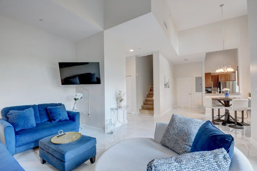 Wake up every morning to a beautiful sunrise and water views of the lagoon. This immaculate townhome with stairs has tall ceilings, an open floor plan w/3 bedrooms and 2.5 baths. Owner's suite has a queen bed with a balcony to take in the surrounding views. 2nd bedroom has a queen bed and 3rd bedroom has an office w/ trundle bed in the closet. Walk to restaurants and shops - Two Georges, Banana Boat, and the Boynton Harbor Marina w/ jet ski rental. 15 min walk to Ocean Ridge Beach. Walk to downtown Boynton and a 10-minute drive to trendy Atlantic Ave. in Delray Beach. Casa Costa has resort-style pools, a workout facility, steam showers, a sauna, valet parking, a secured entry, and a front desk person. 2 garage spots and guest parking. Pets welcome at owner's discretion. No smoking