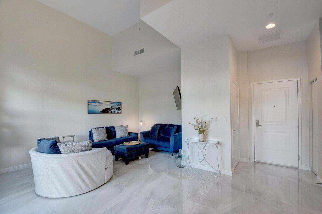 Internet and cable fees included in rent fee. Enjoy unique Corner 1 bedroom, 1 bathroom unit with plenty of natural light and beautiful sunsets. The kitchen has granite counters and wood cabinets. Impact windows and slide door to the wrap around extended oversized balcony to enjoy breathtaking sunsets every evening. This one bedroom condo has beautiful new flooring, washer and dryer in the unit. Kitchen has granite countertops and stainless steel appliances; marble bathroom with bathtub and frameless shower. Available furnished and without furniture. Beautiful Casa Costa 5 star resort style community, offers billiards, a theater, social room and business center, fitness center, two heated pools, jacuzzi, sauna and steam room, massage room, and 24/7 concierge services. Secure and valet parking is available. Just Minutes walk to restaurants and marina, less then 1 mile to the beach. Proximity to the downtown West Palm Beach and Atlantic Ave in Delay Beach with shops and restaurants. It is near I-95 and Airports. Basic cable, Wi-Fi Internet and water are all included. Unit comes with 1 covered parking garage space, additional parking is available for $150 a month. Pets allowed