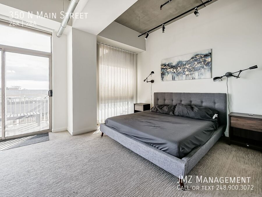 Experience upscale urban living in the heart of Royal Oak! This stylish 2-bedroom, 2-bath condo offers a perfect blend of comfort and sophistication with an open-concept layout, floor-to-ceiling windows, and private balcony views of the city. The sleek kitchen features stainless steel appliances and granite countertops, while the spacious primary suite boasts a walk-in closet and luxurious bath. Enjoy premium amenities including fitness center, two dedicated parking spots, and concierge services — all steps away from Royal Oak’s best dining, shopping, and entertainment. ALL SHOWINGS MUST BE ACCOMPANIED BY A REAL ESTATE AGENT, IF YOU HAVE AN AGENT PLEASE CALL THEM TO SCHEDULE, IF YOU DO NOT HAVE AN AGENT ONE CAN BE PROVIDED FOR YOU. SHOWINGS CAN NOT BE SCHEDULED ONLINE. PLEASE CALL 248 nine two seven 24 seven zero SO WE CAN CONNECT YOU WITH A REAL ESTATE AGENT. Please visit our website at jmzmanagement . com to apply or find additional information.