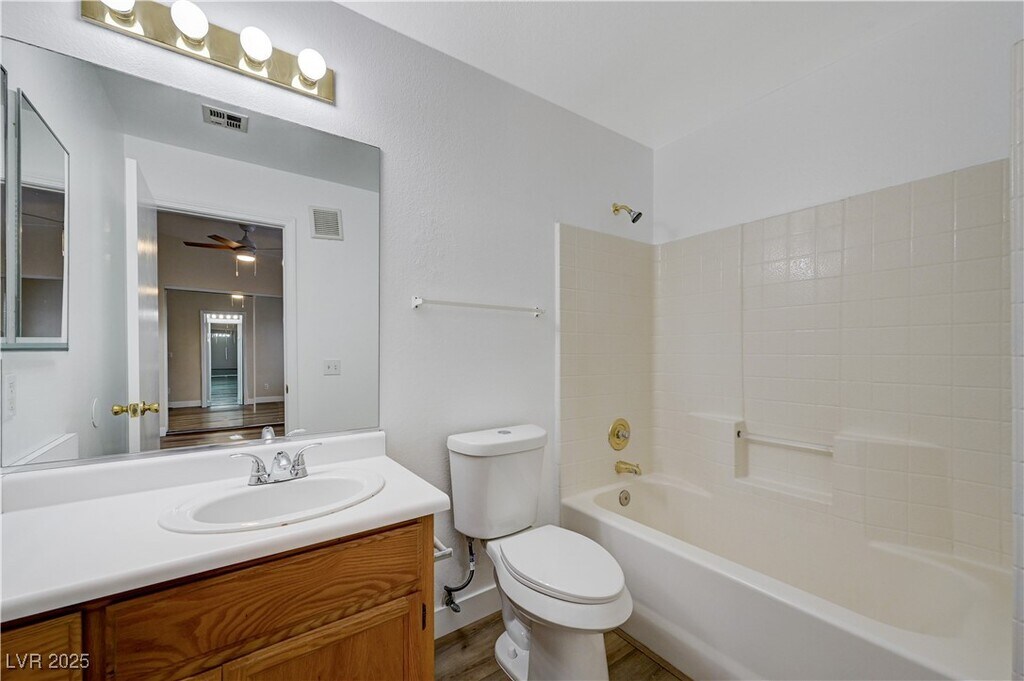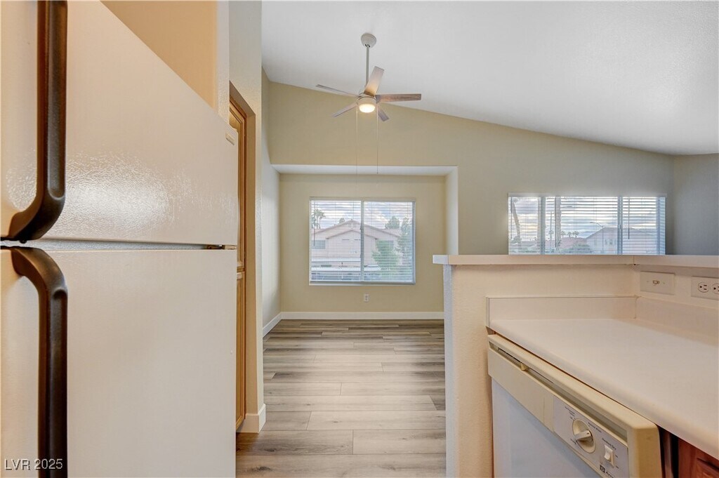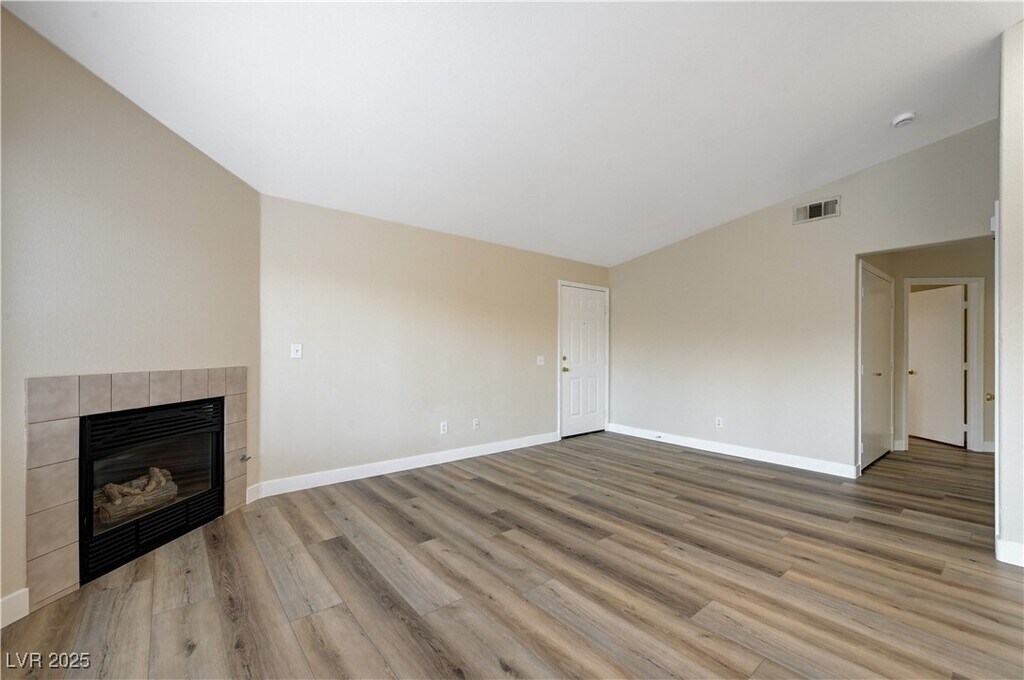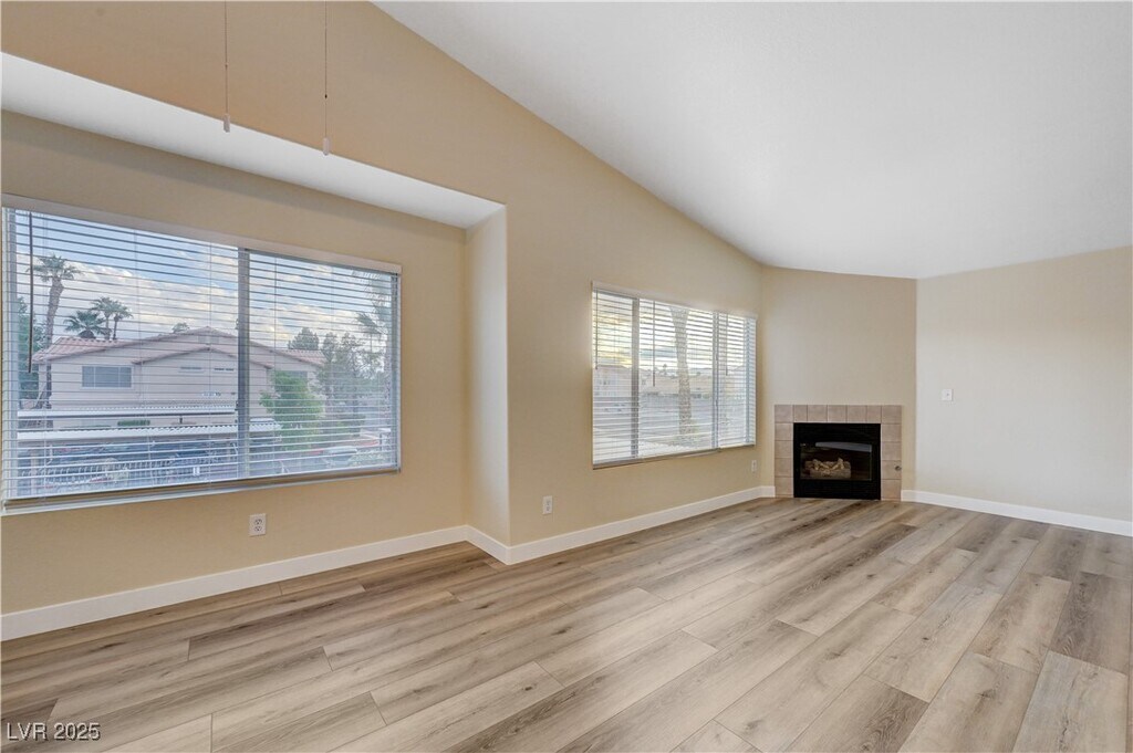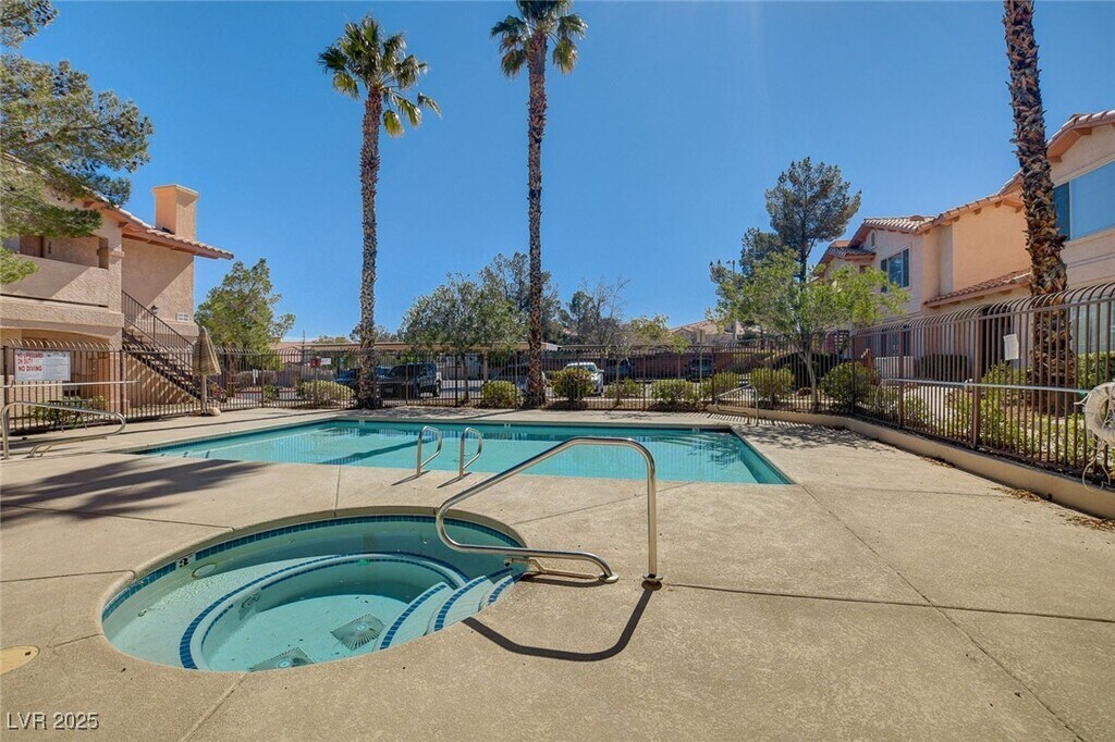 Great Summerlin-Adjacent Location! Spacious 2nd floor 1 level 2 bed, 2 bath, Covered patio with vaulted ceilings and a large living room featuring a gas fireplace. Recently updated with fresh two-tone paint, new blinds, and luxury vinyl plank flooring throughout – no carpet. Community amenities include a pool and covered parking. Convenient access to Summerlin Parkway, shopping, schools, parks, Tivoli Village, Sun Coast, Rampart Hotel & close to Summerlin Hospital.