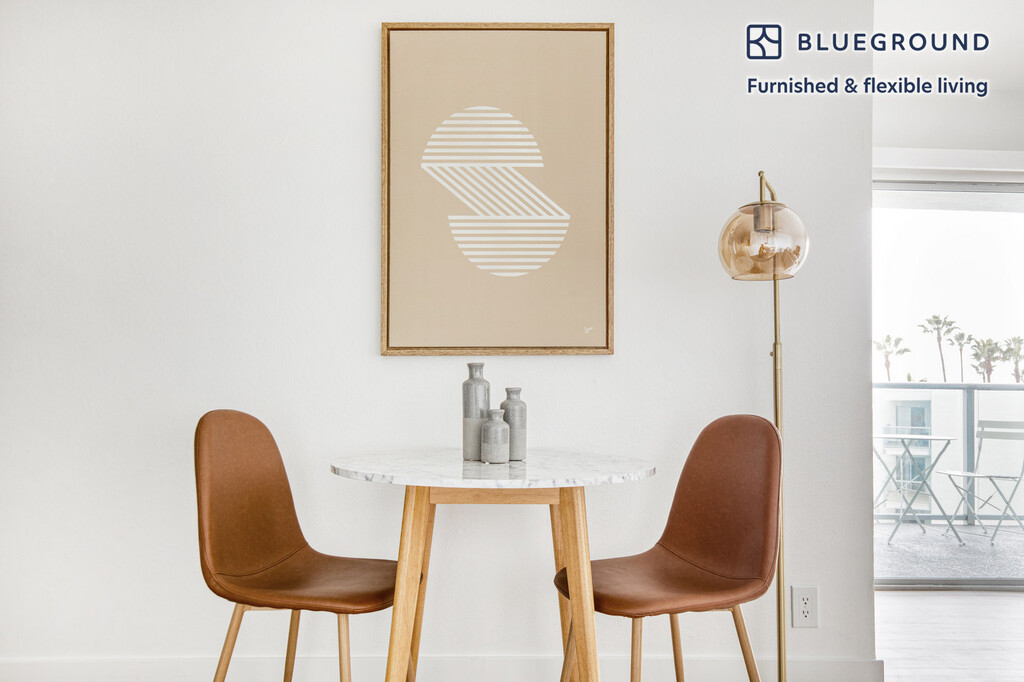 Feel at home wherever you choose to live with Blueground. You’ll love this cheery South Redondo furnished one bedroom apartment with its modern decor, fully equipped kitchen, and exquisite living room with great balcony views. Ideally located, you’re close to all the best that Redondo Beach has to offer! (ID #LAX614) The advertised rate of $3,950/month is the lowest available price, based on a 1 month(s) and 28 day(s) stay with a move-in date of April 8, 2026. If you’re looking for a 1-year stay, the rate is $4,410/month. Rates vary depending on the duration of stay, season, and other parameters. For exact pricing and additional pricing components, please visit our website and enter your desired move-in and move-out dates. The rate is applicable when billed upfront; it can be higher if billed in multiple payments. Brokers are welcome to reach out. Were you looking for an unfurnished lease? Try Blueground instead and upgrade from unfurnished to furnished living: - Furnished at rates comparable to unfurnished - No setup or furniture costs - save thousands - Move-in ready - save time, just bring your suitcase Designed with you in mind Thoughtfully designed with bespoke finishes, modern furnishings, and a fully equipped kitchen, you’ll enjoy that “I’m home” feeling with this Blueground apartment. Whether you’re lounging in your sophisticated living room streaming the latest and greatest entertainment on the smart TV or premium wireless speaker, or getting some well-earned rest on the superior quality mattress with luxury linens, you’ll fall in love with everything this South Redondo apartment has to offer. This apartment also offers in-apartment laundry. Sleeping arrangements King Bed, 70.8in/180cm Amenities Building amenities unique to this one bedroom apartment include an on-site: - BBQ Area - Dryer - Elevator - Swimming pool - Washing machine - Lounge - Parking - Pets allowed Arrival and ongoing support The entire apartment is yours to enjoy! Throughout your stay, you’ll have access to our Client Experience team through the Blueground App. You can schedule additional cleanings, submit maintenance requests, and view our neighborhood recommendations with just a few taps. We’ll share all details upon confirmation of your stay. Other things to note Building amenities may have an extra cost. This Blueground apartment has flexible lease options, allowing you to book it for one month, a year, or more. Pets are welcome, though weight limits and breed restrictions apply and may incur fees. Parking is offered based on availability and is subject to a fee. We take great pride in ensuring every photo displayed is shot in our own units with our actual furnishings. That said, we regularly refresh our decor and furniture arrangement, which may differ from what’s pictured. [SI]