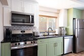 Completely Renovated, Fully Furnished Casita Take a step up from apartment living! Everything is new inside this terrific casita. All bills paid, including electrical, water, gas, internet and YouTubeTV. Quiet and central. The all-brand-new appliances, furniture, dishes, flatware, cooking pans and utensils have never been used. Central heat and air-conditioning; tankless water heater; full-size stacked LG washer/dryer; king-sized bed with new Beautyrest PressureSmart Lux mattress. Private entrance; large private backyard with Weber grill; seating for two; a retractable cantilever umbrella; 8-foot privacy fence; and back-patio gate latch inside fence for security. Off-street parking with room for 2 cars in the private driveway. Close to Everything Adjacent to Nob Hill on a quiet street with friendly neighbors. Super close to all Nob Hill restaurants and shops. Quiet neighborhood streets are great for outdoor activities. Small neighborhood coffee shop just one block away. No smoking. Minimum 12-month stay. Shorter lease term possible for select tenants. One small well-behaved pet will be considered with a pet fee. $50 application fee per person covers TransUnion SmartMove background, credit and rental check for each adult occupant.