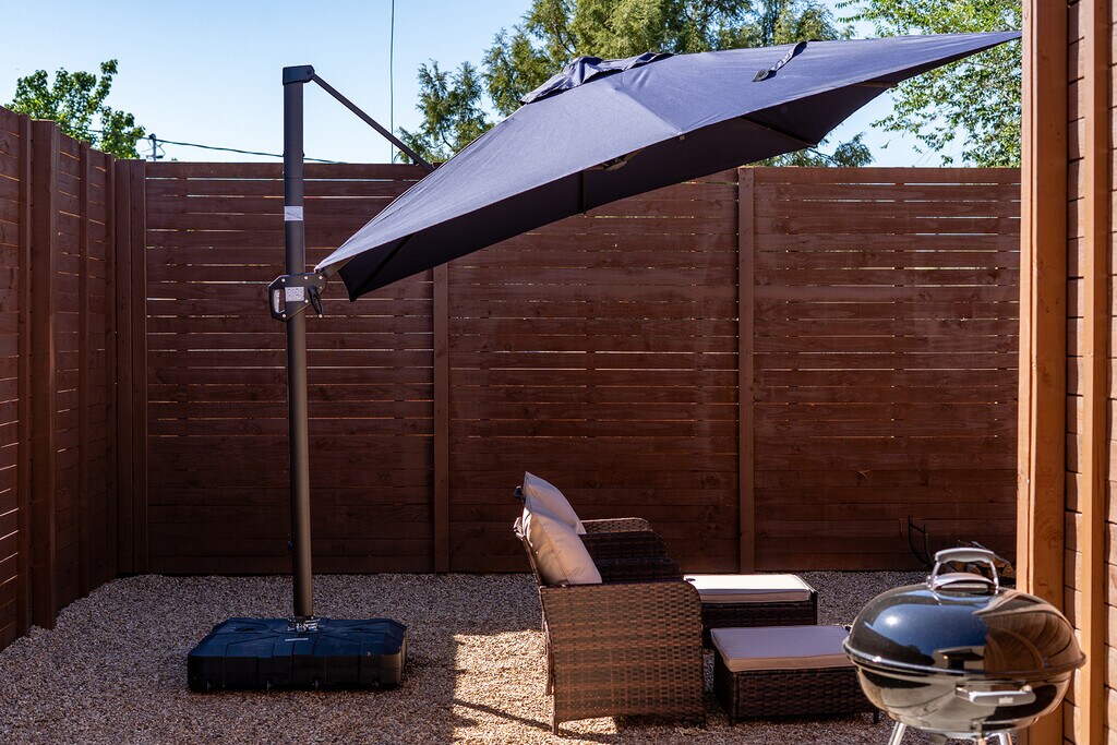 Take a step up from apartment living! Everything is new inside this terrific casita. All bills paid, including electrical, water, gas, internet and YouTube TV. Quiet and central. The all-brand-new appliances, furniture, dishes, flatware, cooking pans and utensils have never been used. Central heat and air-conditioning- tankless water heater- full-size stacked LG washer/dryer- king-sized bed with new Beautyrest PressureSmart Lux mattress. Private entrance- large private backyard with Weber grill- seating for two- a retractable cantilever umbrella- 8-foot privacy fence- and back-patio gate latch inside fence for security. Off-street parking with room for 2 cars in the private driveway. Close to Everything Adjacent to Nob Hill on a quiet street with friendly neighbors. Super close to all Nob Hill restaurants and shops. Quiet neighborhood streets are great for outdoor activities. Small neighborhood coffee shop just one block away. No smoking. Minimum 12-month stay. Shorter lease term possible upon negotiation. One small well-behaved pet will be considered with a pet fee. $50 application fee per person covers TransUnion SmartMove background, credit and rental check for each adult occupant.