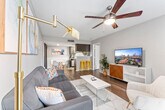 The advertised rate of $2,849/month is the lowest available price, based on a 30 day(s) stay with a move-in date of May 17, 2026. Rates vary depending on the duration of stay, season, and other parameters. For exact pricing and additional pricing components, please visit our website and enter your desired move-in and move-out dates. The rate is applicable when billed upfront; it can be higher if billed in multiple payments. Welcome to your new home in South 1st/SoCo, a true gem of the city with a diverse selection of food, entertainment, and outdoor activities. This 950 sqft 2-bedroom apartment is located on the 1st floor and is accessible via a small flight of stairs. Designed with a vibrant locality and home-inspired design, this apartment comes standard with a fully stocked kitchen, large bedrooms, fast Wi-Fi, a community laundry facility, and a dog park. The fully equipped kitchen includes pots and pans, bakeware, dinnerware, silverware, cookware, a blender, and a toaster. A dedicated dining area includes a dining table and chairs for 4. For entertainment, there is a 50” smart TV in the living room with complimentary access to live cable (YouTubeTV), Disney+, Amazon Prime Video, HBO Max, Hulu, and ESPN+ and 43” smart TVs in each of the bedrooms (no complimentary access to streaming apps on bedroom TVs, guest accounts required). This apartment is pet-friendly (pet fees apply). Pet fees are $25 per night for 1-4 nights, $200 for 5-29 nights, and $300 per month for 30+ nights. Free on-site surface lot parking is available. South 1st Street is one of the trendiest and liveliest communities in Austin, located right below Downtown Austin and adjacent to SoCo (South Congress). Guests can enjoy a scenic view of Lady Bird Lake and the city beyond while taking a walk along The Boardwalk. The neighborhood is home to many cheap trendy eateries and coffee shops. The apartment is 8 minutes from Downtown and the airport, 12 minutes from Zilker Park (ACL), and 8 minutes from Barton Creek Greenbelt. This community and its buildings were built in the 1990s and therefore might exhibit signs of interior and exterior wear, outdated aesthetics, awkward floor plan layouts, and other quirks and features common in older properties. Smoking, parties, and excessive noise are not allowed, including on balconies and in shared spaces. Smoking violations are subject to a $1,000 fine, which includes the cost to clean, deodorize, and repair damages. Guests who stay beyond their designated check-out time or delay our housekeeping staff are liable for any associated costs and expenses, up to $75 per hour after 10 am. Quiet hours are between 10 pm and 8 am. Undisclosed pets will be charged at $200 per day. For long-term stays over 30 days, guests are required to pay for monthly full-home cleaning services at $95 per clean. Tampering with noise detecting devices is strictly prohibited. Includes a dedicated workspace in each bedroom with desks and chairs and ultra-fast Wi-Fi (ethernet connection available) with the latest in router technology. [SI]
