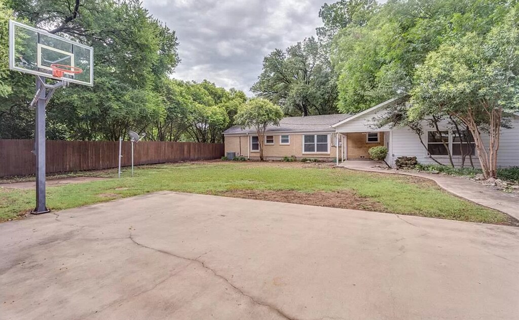 With the backyard scheduled to have football turf laid down this over sized back yard with covered patio and basketball court is every sports enthusiast dream at TCU. This 4 bedroom 3 bath house has 2 living spaces and next door to several other TCU Off Campus houses we have for rent as well. Pest control, monthly air filter checking/changing, and landscaping is included.
