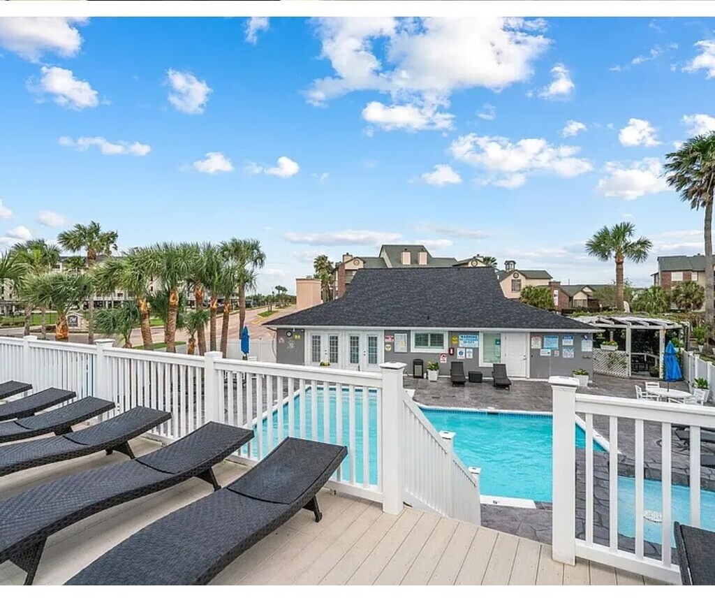 Walk to the beach from "Sea La Vie",a COMPLETELY FURNISHED condo at popular Palms at Cove View Condos just minutes from fabulous restaurants,shopping,Moody Gardens,the Strand,& cruise ships! Condos like this one don't come up for lease often,so here is your opportunity! This spacious floor plan offers easy-cleanup vinyl plank flooring throughout- no carpet. Open entertaining areas. The kitchen showcases a full suite of appliances,plates,pots,pans - all included! Full-size washer/dryer. Spacious primary bedroom offers bathroom access with separate vanity area,& an expansive walk-in closet. Second bedroom features a king size bed. Enjoy complex amenities to include the recently-renovated pool,sun deck,fitness center,newly-refreshed bbq area,& clubhouse. Famous West End Galveston bird-watching also just minutes away from this coveted location. Just bring your packed bags & tooth brush to enjoy your slice of ISLAND TIME without the upkeep & HOA fees! Schedule your tour today. MLS# 10493720