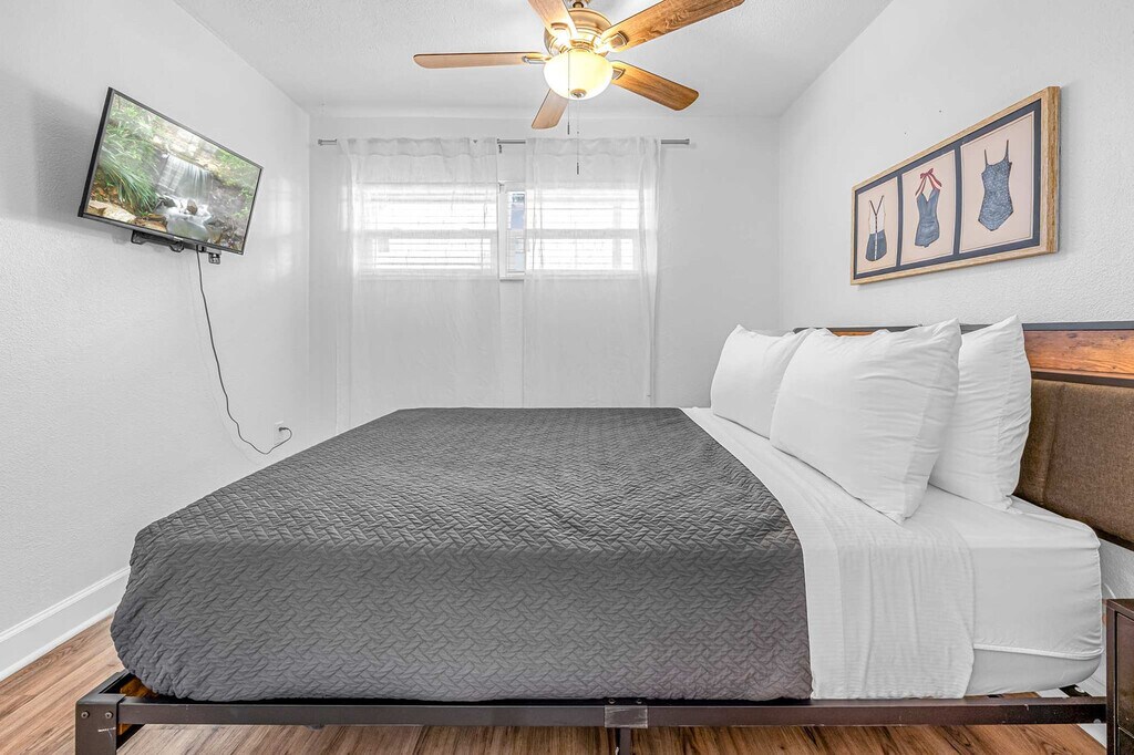 Discover the perfect balance of relaxation and adventure at this 2-bedroom, 1-bathroom waterfront apartment in Cocoa Beach. Steps from the ocean and overlooking the Indian River Lagoon, it’s your ideal tropical getaway. Enjoy the waterfront location with a quick walk to the Atlantic Ocean's white-sand beaches while being on the Indian River. The apartment features a king bed in the primary bedroom and a queen bed in the guest room, both with cozy linens. Take advantage of the private dock, breathtaking sunsets, and views of the Indian River Lagoon. The fully equipped kitchen boasts granite countertops and stainless-steel appliances for easy meal preparation. Relax in the cozy living room with a sectional, flat-screen TV, and high-speed Wi-Fi. Plenty of space for on-site parking at the unit. While we love all furry friends, only dogs are allowed at this property, with a fee of $100 per pet, per stay. Cocoa Beach is among Florida’s top ten beach towns located on Florida’s Space Coast. World famous for its calm and consistent waves, the Kennedy Space Center, and home to the greatest surfer of all time, 11x World Champion, Kelly Slater. Don’t forget to visit Downtown Cocoa Beach located just 5 minutes away, where you will find restaurants that will leave you craving more, live music, and nightlife! Located just 60 miles east of Orlando, close to some of the world’s best theme parks, including Disney World and Universal Studios, this small beach town is one of Florida’s most desired vacation destinations. Find your serenity and adventure offshore fishing in the Atlantic Ocean, kayaking, paddleboarding and waterskiing on the Indian River Lagoon or watching a rocket take off into space in your own backyard. Just a 30-minute drive north and you will find yourself in the hub of the nation’s human space program at the Kennedy Space Center Visitor Complex where you can walk the same footsteps that preceded Neil Armstrong’s journey on the moon. This small beach town full of sun, sea and tranquility is your home-away-from-home and the next vacation destination you don’t want to miss! Our digital locks let you arrive and check yourself in, but we’re here if you need us. Message us on the app if you need anything during your stay. For urgent matters, call the number provided. To ensure a comfortable start to your stay, we provide an initial stock of essentials like paper towels, toilet paper, tissues, coffee pods, creamer, sugar, light cleaning supplies, garbage bags, sponges, dish soap, and dishwasher tabs. If you need additional supplies during your stay, please plan to replenish them as needed. Mailbox access is not available for guests. [SI]