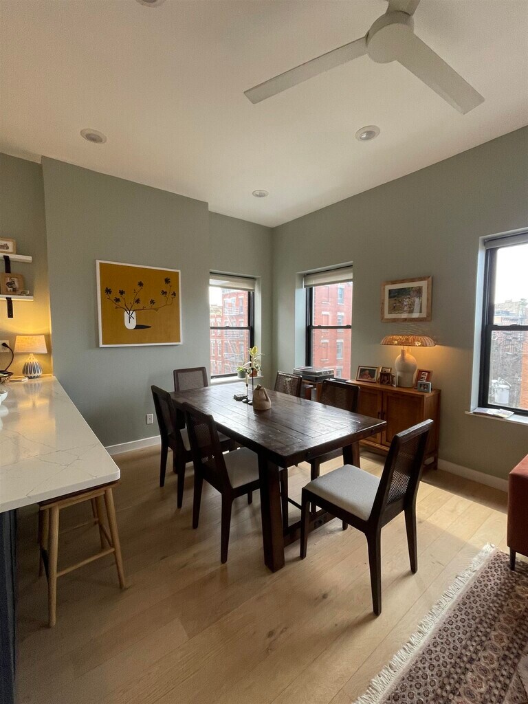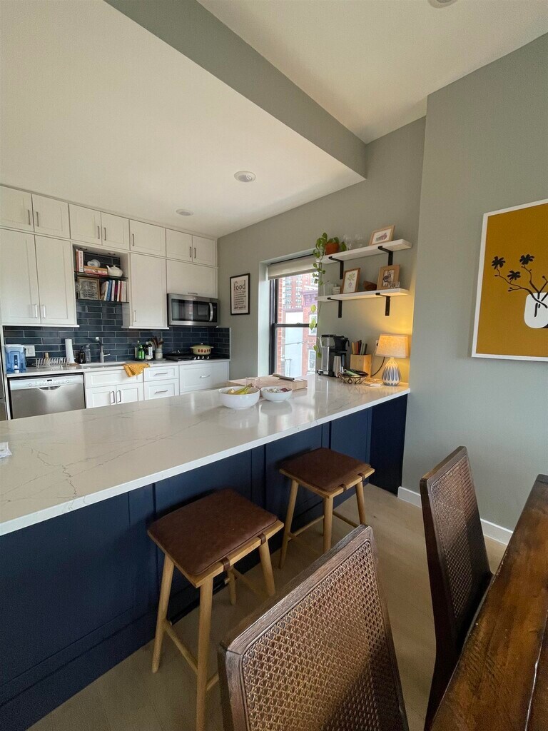 You’ve found the perfect apartment! Newly renovated and well appointed, this spacious 945-square-foot two-bedroom, two-bath unit is just two short blocks from the Grove Street PATH and the Newark Avenue Pedestrian Plaza—placing top-tier restaurants, cafés, specialty shops, and vibrant nightlife right outside your door. The sun-drenched open floor plan features an ultra-modern kitchen outfitted with stainless steel appliances, a separate beverage refrigerator, beautiful stone countertops, an oversized island, and custom cabinetry. Blonde hardwood floors flow seamlessly through the expansive living and dining areas, creating a bright and inviting atmosphere. Both generously sized bedrooms and two full bathrooms showcase sleek, contemporary finishes and abundant storage—from the custom walk-in closet in the primary bedroom to floor-to-ceiling kitchen cabinetry and a striking wall of built-ins in the living room. In-unit laundry adds to the convenience. Schedule your private showing today— you’ll be glad you did!