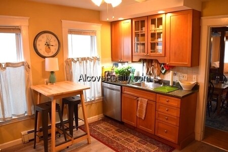 Tufts University: Nine rooms, FIVE bedrooms, two full bathrooms. PRIVATE DECK!!! Spacious bedrooms, tile bathroom, hardwood floors, newer kitchen with full appliances eat-in-kitchen w/dishwasher, disposal and microwave. Separate living & Dining rooms. Laundry & storage in basement. Hardwood floors.