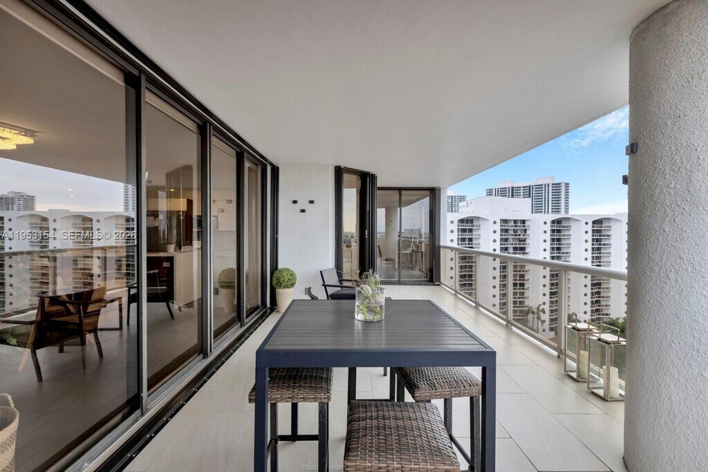 Experience luxury living in this fully furnished 2 bed + DEN unit with breathtaking 180-degree views of Waterways Marina and Sunny Isles. This elegant home boasts large porcelain flooring, stainless steel appliances, automated shades, and a lavish master suite with walk-in closets and a jacuzzi. Additional features include a laundry room, a storage unit, and two covered parking spaces. Enjoy top-tier building amenities, including pools, jacuzzi, a summer kitchen, a gym, a tennis court, valet service, and direct access to the marina. MLS # A11953154