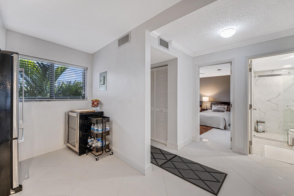 Sanna EronimousSpectacular, Fully Renovated & Immaculate furnished Unit with Stunning Southern Views! Enjoy breathtaking views of the water, pool, and lush gardens from the expansive screened-in balcony of this beautifully upgraded unit. Completely remodeled in 2023 with high-end finishes, this home features a brand-new AC, impact windows, and elegant diagonal tile flooring. The light, modern kitchen boasts sleek cabinetry, new appliances, a granite backsplash, and a wine cooler. Spacious Scandinavian-inspired bathrooms and a full-size washer and dryer add both style and convenience. A true must-see! This well-maintained Soutgate community offers a serene garden retreat, an Intracoastal-front pool, a sauna, and BBQ area. Enjoy deeded beach access just across the street and shopping and dining close by. Also WPB Airport, Downtown Delray, CityPlace, and Wellington's equestrian facilities all within easy reach.6 month rent available for $4800/month.