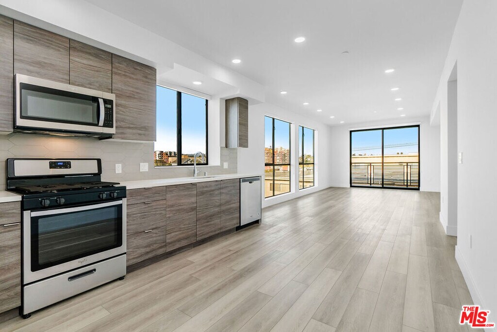Pent house unit! Brand new contemporary apartment community with high end finishes. Live in the heart of LA with a vibrant social scene and the best restaurants. Custom tile & marble floor & bathrooms, wood vinyl floors, , custom kitchen cabinets, premium stainless steel appliances, Quartz countertops & kite tile backsplash, designer fixtures, backlit LED vanity mirrors, Nest thermostat, dual pane windows, sliding doors, custom 3 panel doors & hardware, , modern surface mount LED Lighting, large balconies with Beautiful Views, free Wifi in common areas, cctv cameras in the building, central air & heating, washer & dryer in Suite, EV charging station, gated underground parking , long term secured bicycle Racks, spacious walk in closets, high ceilings, secure access building, smart intercom system with camera and app Access, secure access elevator , trash chutes on every floor, rooftop deck lounge with Quartz floors, landscaping, Seating, Dining. Video: MLS# 25607965