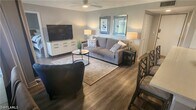You'll love the golf course and pool views from this 3rd floor end unit. It's beautifully furnished and decorated with luxury vinyl flooring throughout. The kitchen has been renovated including new cabinets,quartz countertops and a large island. New light fixtures throughout and many lights are on dimmer switches. Master bedroom has an attached bath and two closets. The guest room features a walk-in closet. Excellent location just a short drive away from the beaches,shopping and nightlife in downtown Naples. Rent includes basic cable,internet and water.