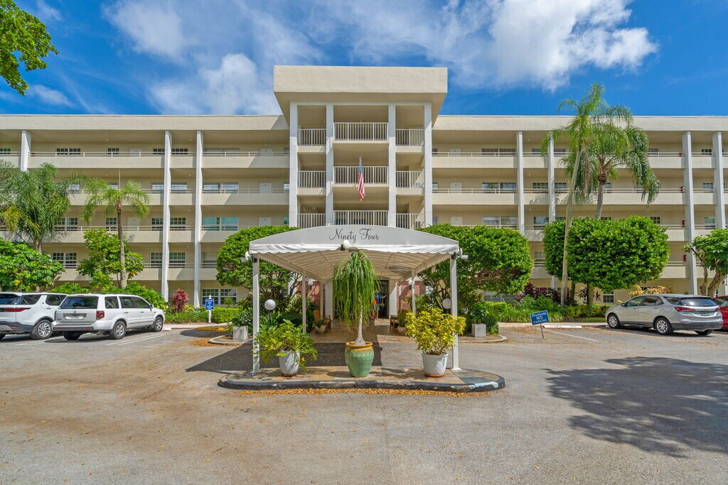 Beautiful one-bed, one-bath condo that is ready to be your next home! Located in a gated community and close toPublix and other great shopping centers for your comfort. Complete kitchen with Amana Appliances (dishwasher, oven/stove, microwave, side by side fridge), many drawers & cabinets, with a dainty wall divider to enhance living area. Enjoy convenience and ease with a carpeted walk-in closet, cohesive tiles throughout, and washer/dryer in.Full bathroom with white tub and shower hand held head. Great location and upgrades. Easy to show, 24 hours / HOA approvals
