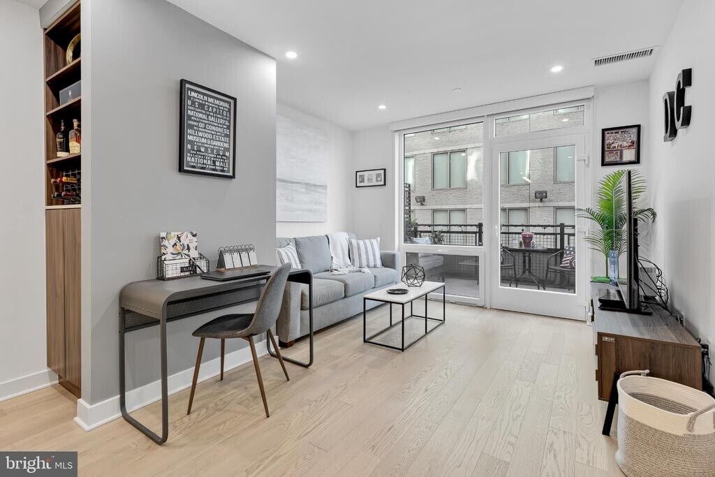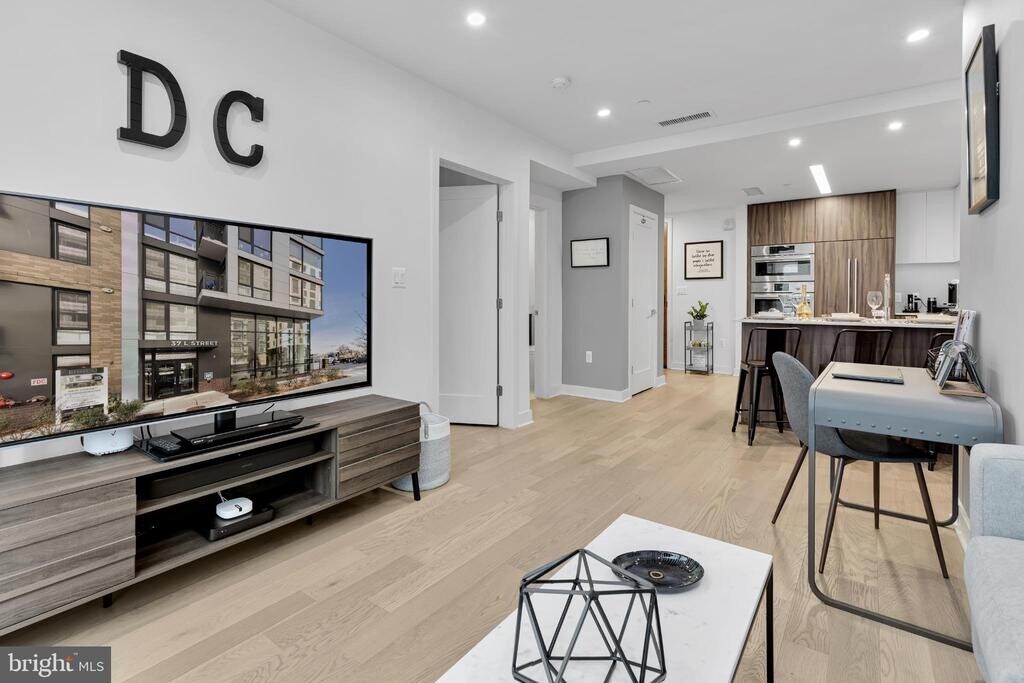 Location, location, location! Welcome to Kennedy on L, Unit #308 — a fully furnished 1-bedroom, 1-bath condo with a large private terrace in the heart of Washington, DC’s vibrant Navy Yard/Ballpark District, just two blocks from Nationals Park. This bright, stylish, move-in ready residence is the perfect solution for professionals seeking high-quality short-term housing with a **minimum 6-month lease**. At **$3,500 per month**, the rent includes **all utilities, 1GB FIOS high-speed internet, a reserved parking space, and a storage unit**, making this an effortless alternative to hotels or short-term rentals. Ideal for visiting professionals, government assignments, military education programs, corporate relocations, or athletes. Convenient access to nearby institutions including National Defense University, National War College, United States Department of Transportation, and Fort Lesley J. McNair. It is also perfectly suited for anyone working in the Capitol Hill or Navy Yard areas. Skip the hassle and cost of furnishing an apartment—this thoughtfully equipped home includes **everything needed for comfortable living**, including furniture, cookware, linens, towels, televisions, office desk and chairs, and more. Inside, the condo features **plank wood flooring, high ceilings, and recessed lighting throughout**, creating a modern and welcoming space. The gourmet kitchen is fully stocked and outfitted with premium **Bosch appliances**, a **panel-ready Fisher & Paykel refrigerator and dishwasher**, gas cooktop, oven, microwave, quartz countertops and backsplash, abundant cabinetry, and under-cabinet lighting. The peninsula island offers seating for four and is perfect for casual dining or entertaining. The bedroom is furnished with a **queen-size bed, dresser, blackout curtains, and a 50-inch Smart TV**. The living room includes a **comfortable sleeper sofa with memory foam mattress**, coffee table, office workspace, and a **55-inch Smart TV with SONOS soundbar**, allowing the space to easily accommodate overnight guests. The bathroom features a **soaking tub and shower combination, custom floating vanity, frameless mirror, and additional storage shelving**. A **full-size washer and dryer** are conveniently located in the unit. Step outside to your **private 6’ x 14’ terrace**, ideal for relaxing after work, enjoying morning coffee, or unwinding after a day in the city. Residents of Kennedy on L enjoy exceptional building amenities including **secure access, concierge services, resident club room, rooftop terraces with grills and fire pits, bike storage, pet spa, valet dry cleaning, and secure parking**. The location is unbeatable. The condo is steps from dining, coffee shops, parks, and entertainment, and only 0.1 mile to the Navy Yard Metro station (Green Line). Nearby destinations include Audi Field, United States Capitol, and Capital One Arena. Enjoy the convenience, energy, and lifestyle of one of DC’s most exciting neighborhoods while living in a fully equipped home designed for comfort and ease. **Owner is a licensed real estate agent.**