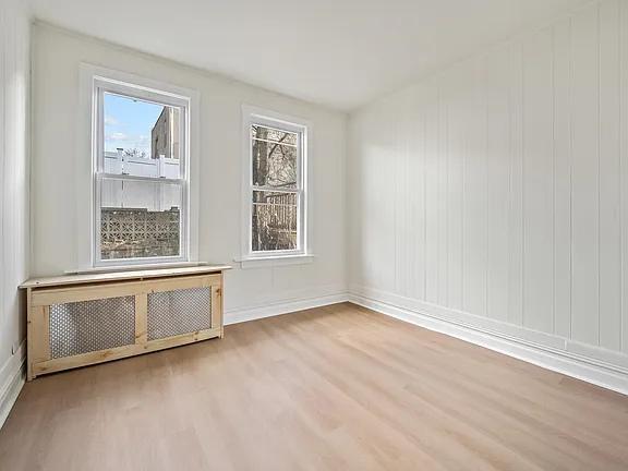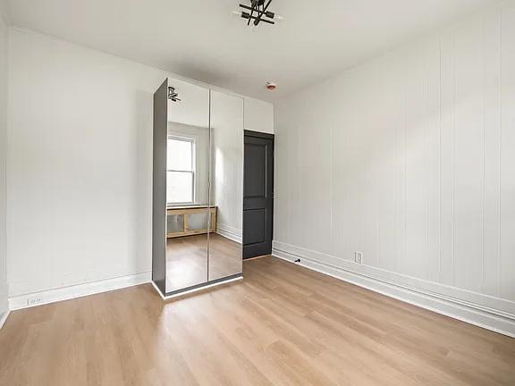 Situated on a quiet street of Jersey City Heights you will find this beautifully renovated 3 bed 1 bath apartment. The moment you walk into the apartment you are welcomed by the warm color tone and oak wood plank ceiling with a beautiful poly finish. Natural sunlight throughout gives this space an amazing feel. Custom built-ins in the bedroom closets as well as an Ikea armoire for additional storage. Walking distance to Leonard Gordon Park, The Hutton, City Bike, shopping and dozens of restaurants to choose from. There is common area laundry, shared yard, and storage lockers available on-site. Net rent price is advertised.