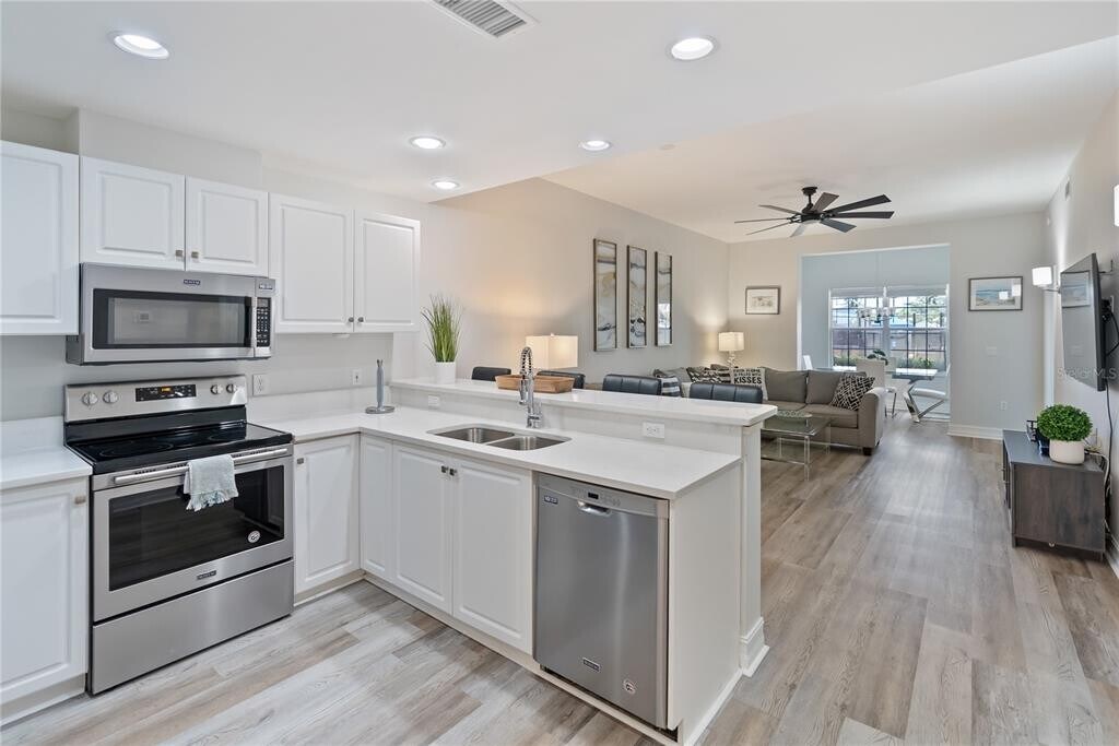 Available Now! Just Professionally Updated!! Located in Bollettieri Resort Villas DIRECTLY ADJACENT to the EAST ENTRANCE of IMG ACADEMY!! This incredible furnished and turnkey ground floor 2-bedroom,2-bathroom home has a modern kitchen with stainless steel appliances and white cabinets. There is extremely comfortable leather living room sofa,loveseat and recliner in the living room and dining room overlooking the IMG Academy Tennis Courts. This home has a Queen-sized bed and smart TV in the master bedroom. There is a full AND twin beds in the guest bedroom. The living room is equipped with a smart tv. The master bathroom has a tub where the guest bathroom has a shower stall. Full-size washer and dryer are inside of the villa. Two covered reserved parking spaces. Enjoy convenience of living inside the Bollettieri Resort Villas at IMG Academy with access to amenities such as a community pool/spa and clubhouse fitness room. **This is an owner managed property. ** Rate includes electric,water,sewer,garbage,pest control,Wi-Fi internet [400 MBPS] and basic cable. Located within a short distance to community pool and spa and IMG facilities. Listed rate is for 9+ month lease. Villa owners reserve the right to increase the rent for shorter leases in addition to applicable short-term taxes and fees. MLS# A4656057