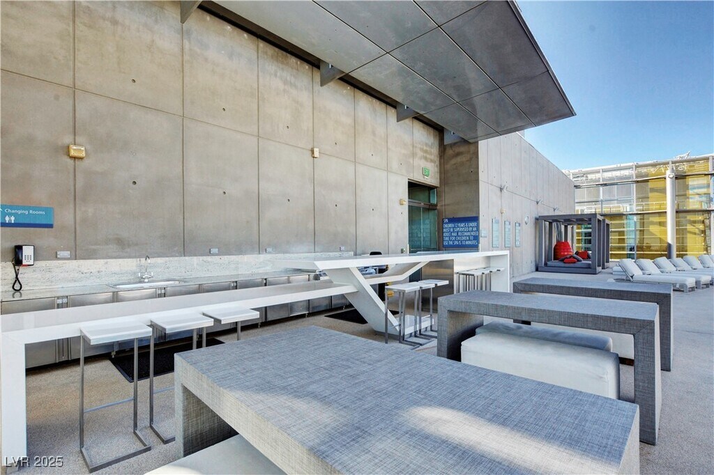 Enjoy the pinnacle of luxury urban living in this studio at Veer Towers in the heart of Las Vegas Strip. The floor-to-ceiling windows flood the space with natural light. Open living area with full kitchen including all stainless steel Bosch appliances. Bathroom has walk in shower & privacy door. Washer & dryer included. Steps away from world-class amenities: T-Mobile Arena, fine dining, high-end shopping, Broadway-caliber entertainment, galleries, & more. Experience Veer Towers' unparalleled amenities on the 37th floor, a sanctuary of relaxation & entertainment with rooftop infinity-edge pool, hot tub, sun deck, media room & fitness center. Additional luxuries: valet parking, on-site concierge, a residential lounge, business center. MLS ID 2756812