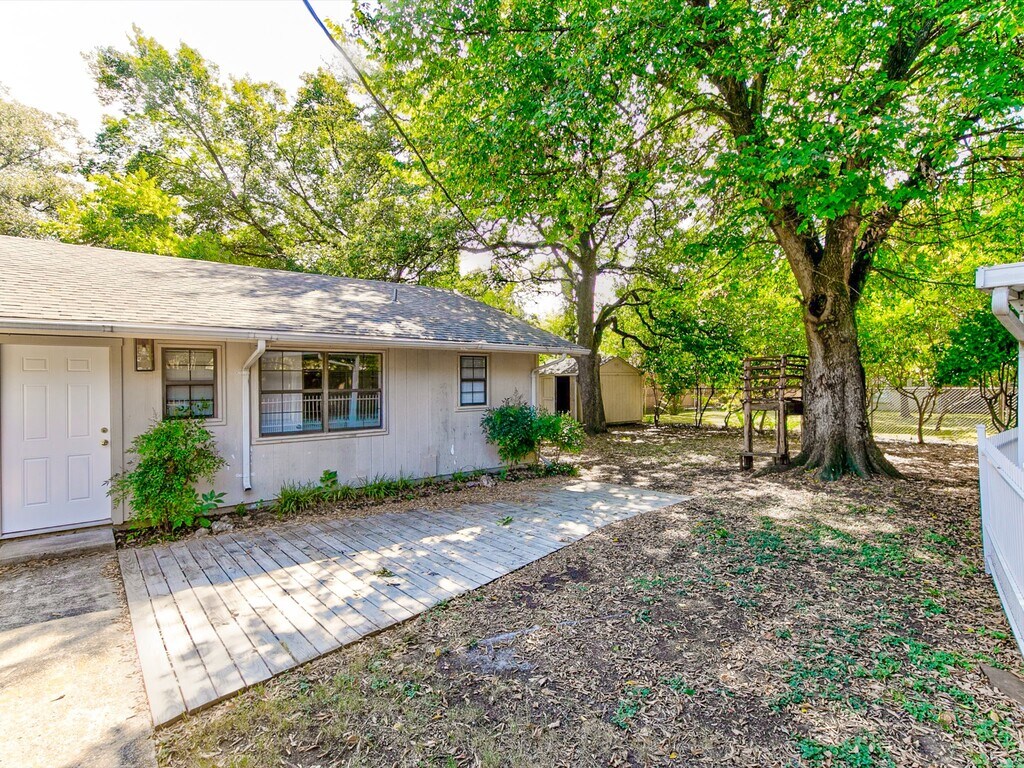 This house says luxury for the TCU Student looking for off campus housing. 2 car garage and 2 covered parking means all 4 tenants can protect their vehicles from those Texas odd weather days. The rooms are spacious with welcoming entry. The back yard is being fenced across the back as well as turf going down in the yard. The shed in back is large for storage of extra items.