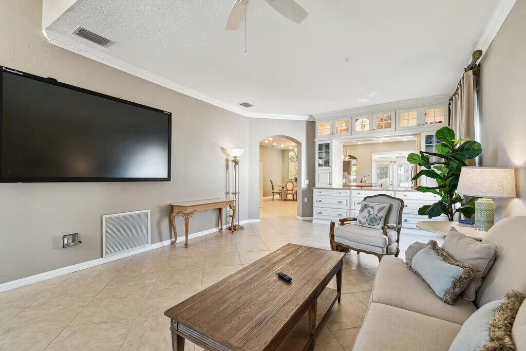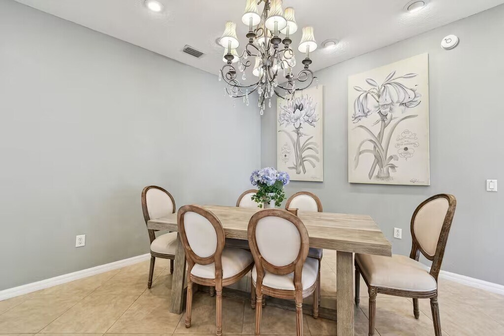 The Golden Eagle Retreat – A Luxurious 3-Bedroom Home - Everything’s Included !! Tucked away in the peaceful community of Stagecoach, The Golden Eagle Retreat is a beautifully furnished 3-bedroom, 2-bath home designed for comfort and convenience. With a modern open layout, a fully equipped kitchen, and a spacious fenced-in backyard, this inviting retreat is the ideal place to unwind. AVAILABLE JANUARY 8, 2025. PLEASE DO NOT DISTURB CURRENT OCCUPANTS. Showings will be scheduled for qualified applicants. Prime Location – Close to Top Attractions! Shopping & Dining – Just minutes from Tampa Premium Outlets and Wesley Chapel’s vibrant dining scene. Outdoor Adventures – A short drive to Busch Gardens Tampa Bay, Lowry Park Zoo, and The Florida Aquarium. Beach & Water Fun – 20 minutes to MetroLagoons, 30 minutes to Adventure Island, and just an hour from stunning Gulf Coast beaches. Sports & Events – Minutes from Saddlebrook Resort, AdventHealth Ice Arena, and Sarah Vande Berg Tennis Center. Plus, within 30 minutes of: Raymond James Stadium (Tampa Bay Buccaneers), Amalie Arena (Tampa Bay Lightning), Steinbrenner Field (Spring training home of the New York Yankees and temporary home of the Rays) The Space This thoughtfully designed retreat offers stylish décor, modern amenities, and everything you need for relaxing. Curl up with a book in the cozy window seat, enjoy a glass of wine on the patio, or settle in for movie night on the 84-inch TV. Working remotely? The living room TV is a touchscreen, perfect for Zoom meetings and conferences. Plus, it offers Picture-in-Picture mode, so you can keep an eye on your little ones while you work. Best of all, utilities and maintenance are included—no extra cost! Sleeping Arrangements Master Suite – King bed, en-suite bathroom, walk-in closet, and plush luxury linens. Bedroom 2 – Queen bed with high-quality bedding and a walk-in closet. Also doubles as a home office with a desk and chair. Bedroom 3 – Cozy Queen bed with luxurious linens. Bathrooms Two full bathrooms provide ample space for everyone to refresh and unwind. Fully Equipped Kitchen Full-size refrigerator, stove/oven, and dishwasher. Keurig coffee maker. Microwave, blender, and toaster. Cooking essentials, dishware, and flatware. Dining table plus island seating Additional Amenities Free high-speed Wi-Fi Utilities included. Central A/C with Nest thermostat. Washer & dryer, iron, and ironing board. Fresh linens, towels, and hairdryer Outdoor & Community Perks Spacious fenced-in backyard – Perfect for relaxing, grilling, or playtime. Access to the community clubhouse & park, featuring: Sparkling pool, Playground, Basketball & sand volleyball courts. Plus, Scenic walking trails around ponds and forests. House Rules & Parking Parking: The driveway fits four regular-sized cars. Please be aware Pasco County does NOT allow street parking. Security: Four exterior security cameras for safety. No smoking or pets allowed – This includes e-cigarettes, vaping and incense. Violators will forfeit deposit. Please be aware lease does not include access to the garage or shed.