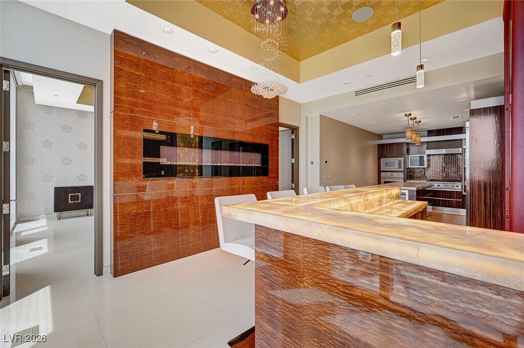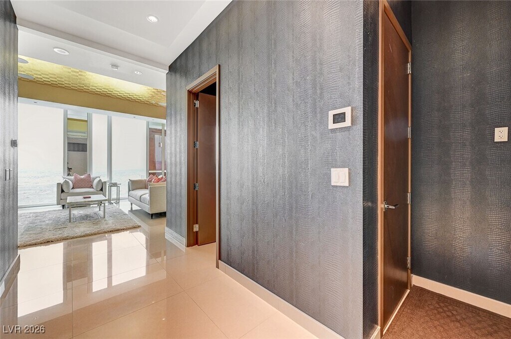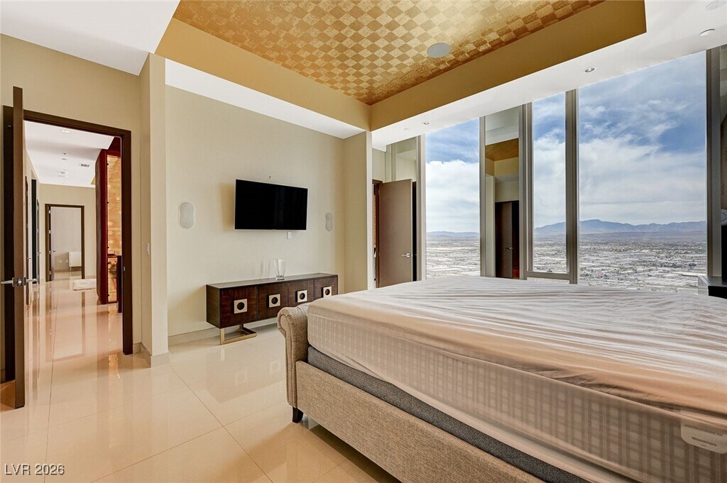 Perched high above the iconic Las Vegas Strip, this fully furnished 2bd/2.5ba luxury residence offers an elevated living experience with breathtaking panoramic views of the city skyline and surrounding mountains. The thoughtfully designed floorplan features an open-concept living and dining area that flows seamlessly into a sleek, modern kitchen, ideal for both entertaining and everyday living. The spacious bedroom provides a private retreat with generous closet space and a spa-inspired bathroom, while expansive windows throughout the residence flood the home with natural light. Elegantly appointed with designer furnishings and refined finishes, the home delivers a turnkey lifestyle complemented by world-class amenities, attentive service, and a premier Strip location.
