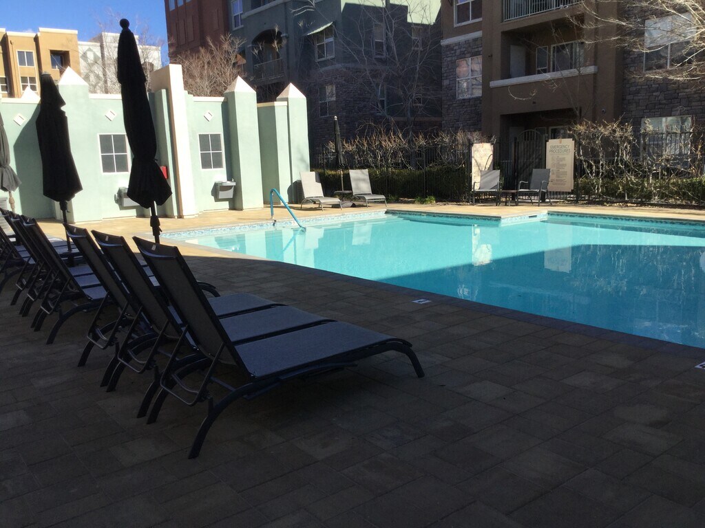 Upscale Executive Living.. 1 bedroom Manhattan style living. 2nd floor, open floor plan with balcony, gourmet style kitchen with upgradded cabinest, all appliances plus washer and dryer, large master bedroom, with his and hers closets, large bathroom, very stylish, community pool, guard gated, clubhouse.