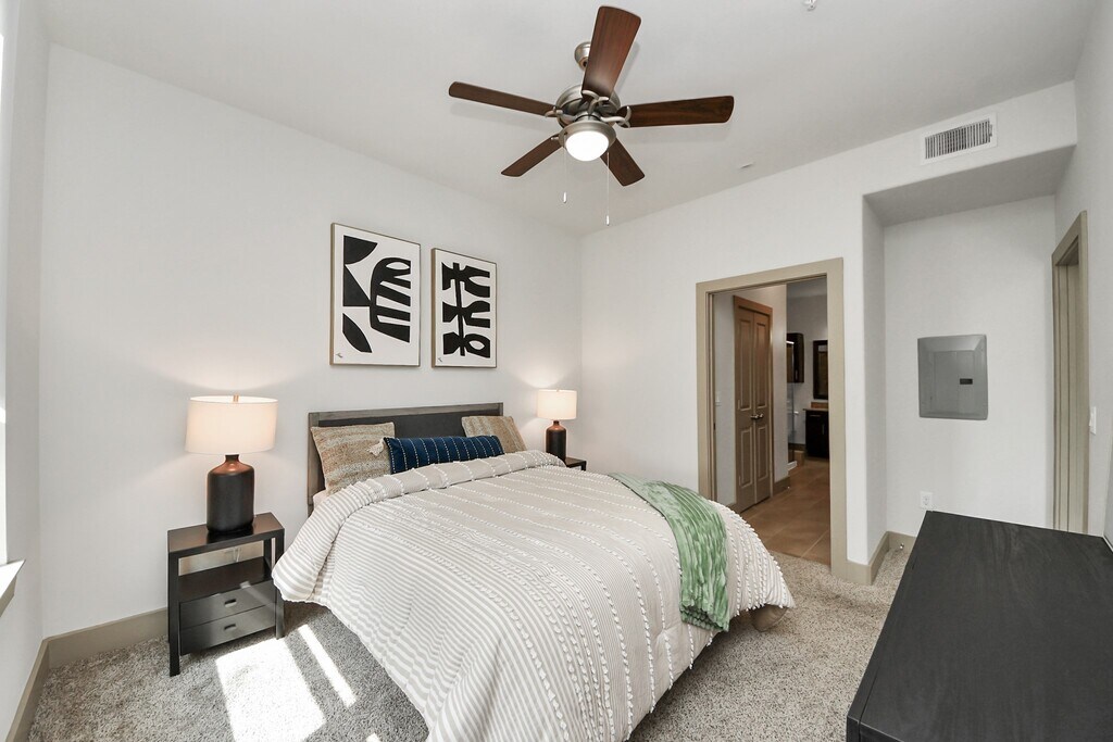 B1 Floor Plan Living in Midtown with Two bedroom apartment featuring spacious,open-concept layouts and premium finishes.Each home includes stainless steel appliances,granite countertops,custom cabinetry,in-unit washer and dryer,hardwood-inspired flooring,plush bedroom carpets,and garden soaking tubs. Select homes feature walk-in showers,wine refrigerators,and walk-in closets.Residents enjoy a 24-hour fitness center,resort-style pool with outdoor kitchen,grills,and firepit,resident sky lounge and clubhouse,business center with printer,interior corridors with direct garage access parking,valet trash service,community WiFi access,and EV charging stations. A MetroRail connection to downtown Houston is just steps away. Resident features are not available in all homes and cannot be guaranteed. Photos are not of actual units,similar floor plan finishes,verify dimensions,12 month lease MLS# 4589631