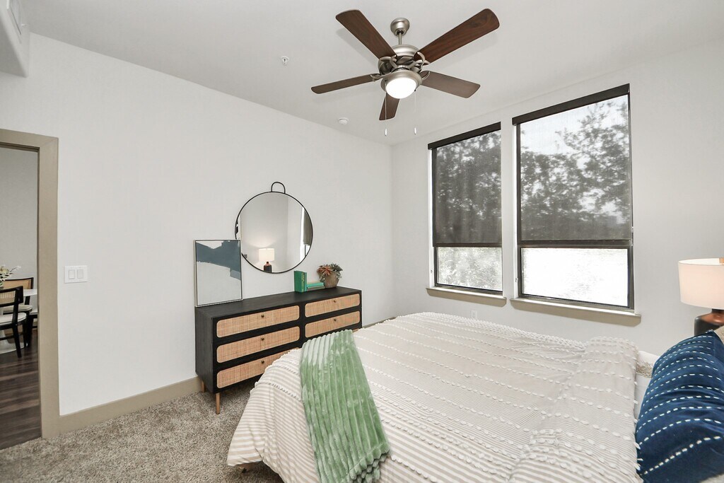 B7P8 Floor Plan Living in Midtown with Two bedroom apartment featuring spacious,open-concept layouts and premium finishes.Each home includes stainless steel appliances,granite countertops,custom cabinetry,in-unit washer and dryer,hardwood-inspired flooring,plush bedroom carpets,and garden soaking tubs. Select homes feature walk-in showers,wine refrigerators,and walk-in closets.Residents enjoy a 24-hour fitness center,resort-style pool with outdoor kitchen,grills,and firepit,resident sky lounge and clubhouse,business center with printer,interior corridors with direct garage access parking,valet trash service,community WiFi access,and EV charging stations. A MetroRail connection to downtown Houston is just steps away. Resident features are not available in all homes and cannot be guaranteed. Photos are not of actual units,similar floor plan finishes,verify dimensions,Income Restrictions apply,12 month lease MLS# 32930020