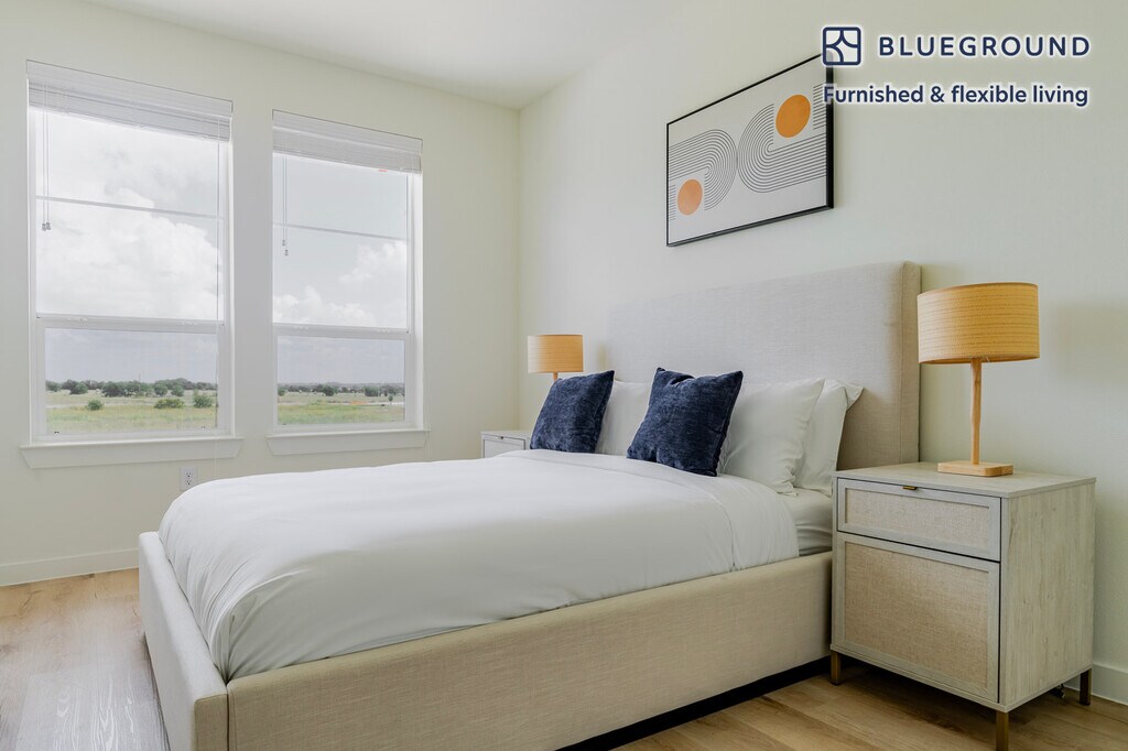 Discover the best of Round Rock, with this two bedroom apartment in Round Rock. It’ll be easy to simply show up and start living in this furnished apartment with its fully equipped kitchen, living room, and our dedicated, on-the-ground support. (ID #ATX322) The advertised rate of $1,370/month is the lowest available price, based on a 4 month(s) and 3 day(s) stay with a move-in date of September 1, 2026. If you’re looking for a 1-year stay, the rate is $1,580/month. Rates vary depending on the duration of stay, season, and other parameters. For exact pricing and additional pricing components, please visit our website and enter your desired move-in and move-out dates. The rate is applicable when billed upfront; it can be higher if billed in multiple payments. Brokers are welcome to reach out. Were you looking for an unfurnished lease? Try Blueground instead and upgrade from unfurnished to furnished living: - Furnished at rates comparable to unfurnished - No setup or furniture costs - save thousands - Move-in ready - save time, just bring your suitcase Designed with you in mind Thoughtfully designed with bespoke finishes, modern furnishings, and a fully equipped kitchen, you’ll enjoy that “I’m home” feeling with this Blueground apartment. Whether you’re lounging in your bright living room streaming the latest and greatest entertainment on the smart TV or premium wireless speaker, or getting some well-earned rest on the superior quality mattress with luxury linens, you’ll fall in love with everything this Round Rock apartment has to offer. This apartment also offers in-apartment laundry. Sleeping arrangements King Bed, 70.8in/180cm King Bed, 70.8in/180cm Amenities Building amenities unique to this two bedroom apartment include an on-site: - Dryer - Swimming pool - Washing machine - Parking - Pets allowed Arrival and ongoing support The entire apartment is yours to enjoy! Throughout your stay, you’ll have access to our Client Experience team through the Blueground App. You can schedule additional cleanings, submit maintenance requests, and view our neighborhood recommendations with just a few taps. We’ll share all details upon confirmation of your stay. Other things to note Building amenities may have an extra cost. This Blueground apartment has flexible lease options, allowing you to book it for one month, a year, or more. Pets are welcome, though weight limits and breed restrictions apply and may incur fees. Parking is offered based on availability and is subject to a fee. Please keep in mind that this is a walk up building. We take great pride in ensuring every photo displayed is shot in our own units with our actual furnishings. That said, we regularly refresh our decor and furniture arrangement, which may differ from what’s pictured. Also note - There are stairs leading up to the entrance of this apartment, but no elevator [SI]