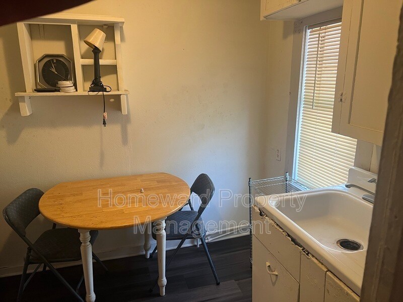 Second floor studio apartment with a separate kitchenette and bathroom. Situated in a quiet neighborhood overlooking the creek. Furnished for your convenience. Lease is Month-to-Month with a 30-day notice cancellation. No pets. Property is furnished with bed, table and 2 chairs, mini-fridge and microwave, A/C and space heater, lamp. All utilities are included. Only ONE resident per unit please.