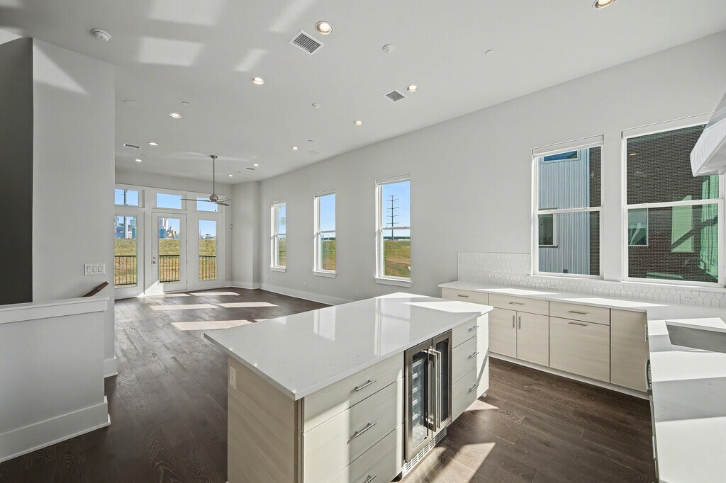 Experience refined urban living, where contemporary design meets stunning city scenery. Perfectly positioned near the Bishop Arts District, Trinity Groves, and Downtown Dallas, this residence places you moments from some of the city’s most vibrant dining, entertainment, and cultural destinations. Inside, the home opens to spacious, light-filled living areas designed for both comfort and style. Expansive decks off the living room and game room offer striking views of the Dallas skyline, creating an ideal backdrop for entertaining or unwinding after a long day. Thoughtfully designed with four bedrooms and four and a half bathrooms, the layout balances privacy and functionality with ease. The chef- inspired kitchen features sleek cabinetry, a high-end Bosch appliance suite, and a built-in wine chiller—perfect for hosting or everyday living. Elegant engineered wood and tile flooring flow throughout the home, delivering a clean, modern aesthetic with low-maintenance appeal. A third-floor laundry area equipped with an LG washer and dryer adds everyday convenience. Additional highlights include a private two-car garage, secure gated access, and exclusive community amenities such as a resort-style pool. Enjoy panoramic views of the Trinity River and the city skyline while living in a setting that blends sophistication, comfort, and location. This residence offers a rare opportunity to enjoy modern luxury in one of Dallas’s most connected an d dynamic neighborhoods—ideal for those seeking style, convenience, and elevated city living.