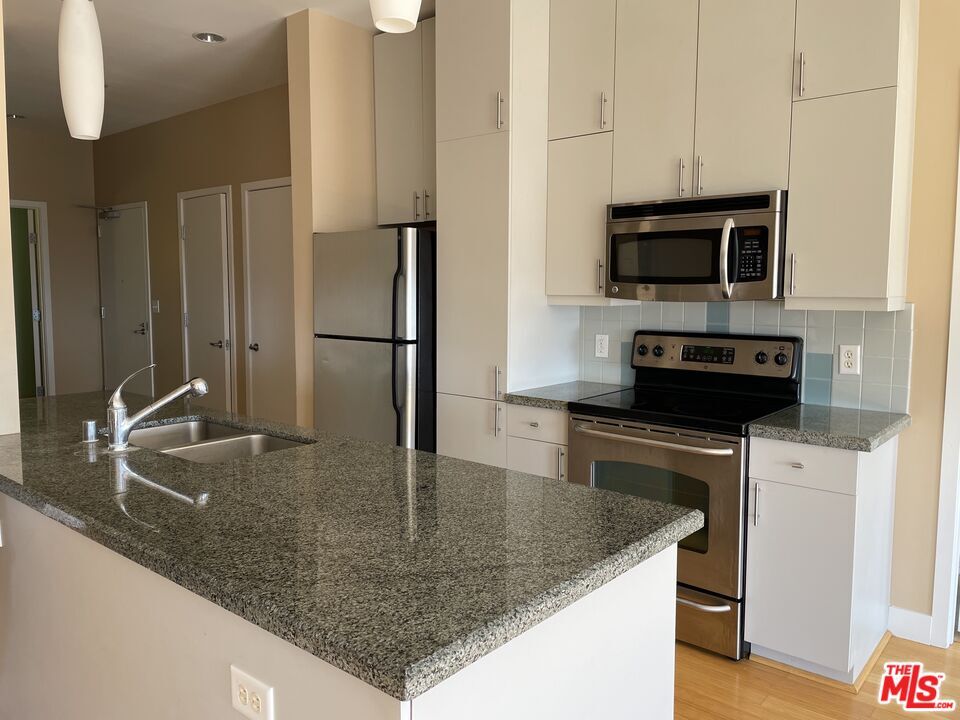 Prestigious south-facing residence at the Mercury Condominium, featuring one of the most desirable floor plans in the building. This unit offers breathtaking, unobstructed city views from both the living room and the primary bedroom. The bright interior showcases hardwood flooring, granite countertops, and stainless steel appliances, creating a modern and inviting living space. Residents enjoy resort-style amenities including 24-hour security, a heated rooftop pool, and a fully equipped fitness center with 360-degree panoramic views of the Los Angeles skyline. Side-by-side parking spaces complete this exceptional leasing opportunity. MLS# 26647953