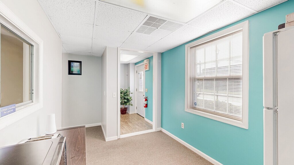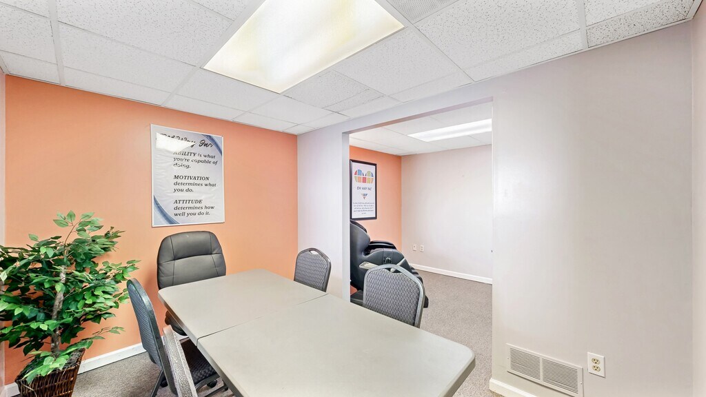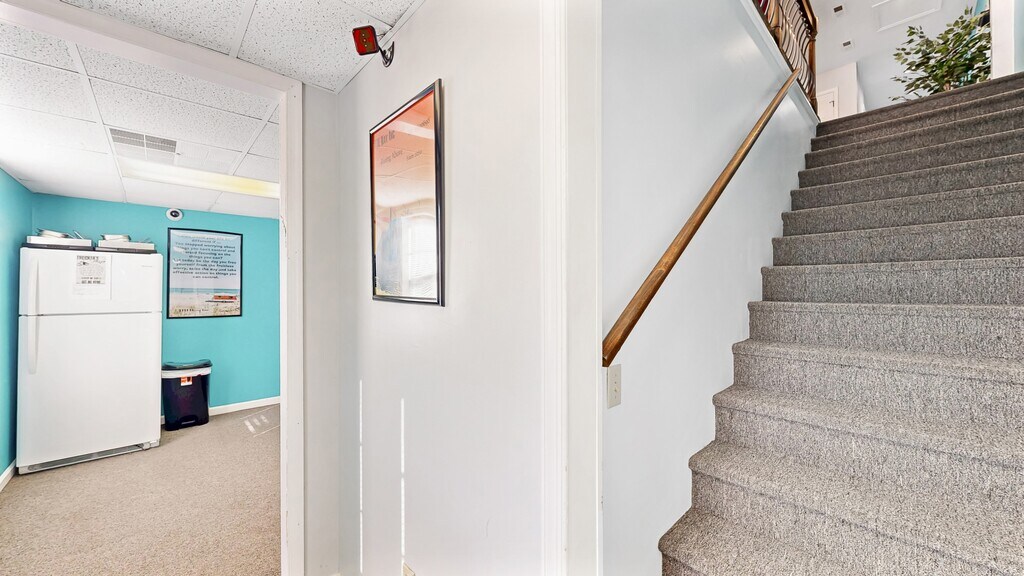 Office space of 1034 SF on the upper level. Has open floor plan great for training or meetings, a large private office with a balcony overlooking the parking lot, an abundance of natural light, 2 bathrooms, ample parking spaces for employees, and dedicated heating, cooling and electric controls. Commercial office space for lease centrally located in Dover DE. Ground level has entrance in front and back, consisting of 3 offices and a reception area in the front, or could also be used for a fourth office. Upper level has open floor plan space great for training, 1 large private office with a balcony overlooking the parking lot, and abundant natural light coming in. Each level has it's dedicated heating, cooling, electric and 2 bathrooms for convenience and offers ample parking in the rear for numerous employees. Located near major roads and other businesses, and easily accessible to restaurants/cafes for a quick lunch break. Also, very convenient to shopping and other necessary needs for any business.