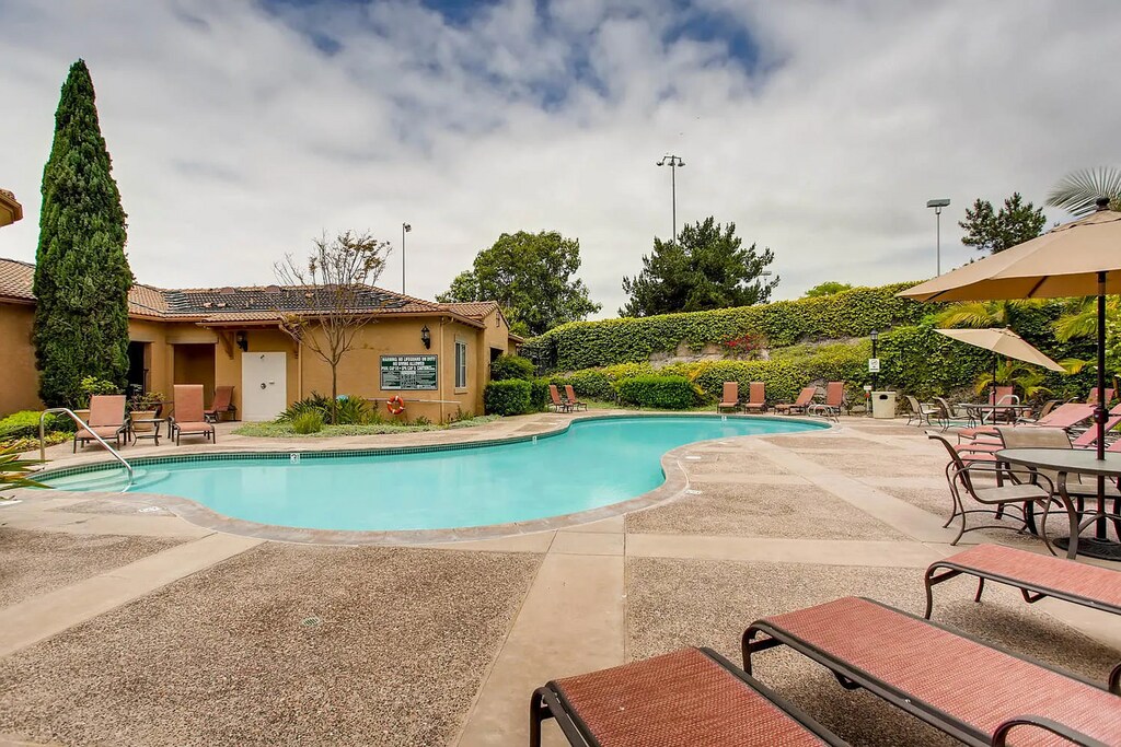 Experience modern urban living at its finest in this bright and inviting 2-bedroom, 2 full bathrooms first floor condo. Perfect for roommates, small families, or anyone seeking comfortable, contemporary spaces. This condo offers a perfect blend of comfort and convenience. Key Features: -Two bedrooms with plenty of natural light & two full bathrooms with generous closet space. The master bedroom shower includes grab bars. -Kitchen with wood cabinetry, durable countertops, stainless steel appliances, and a practical layout -Open-concept living room and dining area ideal for entertaining or relaxing -In-unit washer and dryer for ultimate convenience -Appliances include refrigerator, stove/oven, dishwasher, and microwave -AC is a Nest system. If set up with Wi-Fi it can be controlled remotely. It is also a heating system. -Includes 1 covered parking space and plenty of guest parking is available -Benefits to this first floor apartment: is more accessible since the building does not have elevators. -Private balcony, not facing a parking lot or a walk path. The property is equipped with a range of top-notch amenities designed to enhance your living experience. Enjoy a refreshing dip in the pool on sunny days, or maintain your fitness routine at the well-equipped fitness center. The clubhouse provides a great space for socializing and relaxation. This highly desirable Carmel Pointe location is a short distance to shopping at Del Mar Highlands and One Paseo, recreation and award winning schools. The complex is also close to the 5 and 56 freeways for easy access. Tenant is responsible for Electric/Gas/Cable. Additional pet fees may apply.