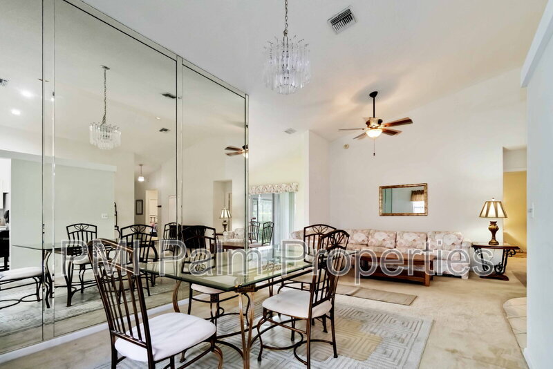 Enjoy beautiful golf course views from this furnished home in the highly desirable Cypress Lakes 55+ gated community of West Palm Beach. This move-in-ready residence features a bright, open layout with spacious living areas, a comfortable kitchen, and an enclosed Florida room overlooking the fairway—perfect for morning coffee or evening sunsets. A two-car garage provides plenty of room for vehicles or a golf cart! About Cypress Lakes: This active-adult community offers a resort-style lifestyle with an 18-hole executive golf course (no membership required), heated pool and spa, clubhouse, fitness center, tennis and pickleball courts, mini-golf, shuffleboard, and organized activities. Rent includes lawn care, cable, and 24-hour security for easy, worry-free living. Location: *Close to shopping, dining, and major highways—just minutes from downtown West Palm Beach, *Palm Beach Outlets, and the beaches. *Experience Florida living at its best—comfortable, convenient, and community-focused. Rental Details: *Lease Term: 12+ months *Age Restriction: 55+ (HOA approval required) *Availability: ASAP *Pets: Pet Details: Small dogs Only. 1 cat only. Pet application fee and monthly fees apply. Move-In Costs: *First month’s rent *Security deposit (equal to one month’s rent) *Lease initiation fee: $150 *Resident Benefit Package: $49.95 The PMI Palm Properties Resident Benefits Package (RBP) delivers savings and convenient, professional services that make taking care of your home second nature. By applying, Applicant agrees to be enrolled and to pay the applicable cost of $49.95/month, payable with rent. This includes Bi-monthly HVAC Filters, Pest control, $1M Identity Theft Protection, Credit Building, and a Resident Rewards Program, Utility concierge and much more. Application Info: *$65 application fee per adult (non-refundable) *1–3 business-day processing *Minimum credit score 650 (co-signer may be required) *No smoking Important Notice: Beware of scammers! PMI Palm Properties is the only authorized leasing agent. We never request wire transfers or lease directly through owners. We do not list on Craigslist or Facebook Marketplace. Pet Details: Small dogs Only. 1 cat only.