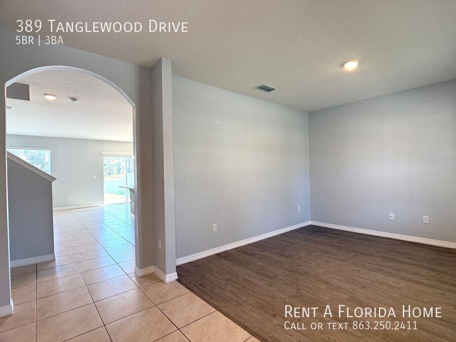 Move-In Ready • Lawn Care Included • Pet-Friendly! This spacious 5-bedroom, 3-bath, two-story single-family home is located in the desirable Tanglewood Preserve community and features a fenced-in backyard with no rear neighbors, offering added privacy and tranquility. The home is surrounded by lush landscaping that enhances its curb appeal. Inside, you’ll find a bright open floor plan seamlessly connecting the kitchen, living, and dining areas, perfect for entertaining. The kitchen boasts a center island, stainless steel appliances, and ample cabinetry. A separate formal living or office space provides flexibility for work or additional gathering space. A guest bedroom and full bathroom are conveniently located on the first floor. Upstairs, the spacious primary suite offers an ensuite bathroom and two walk-in closets, along with three additional generously sized bedrooms. The laundry room is located on the second floor; washer and dryer are included as a convenience item. Ideally situated with easy access to I-4, this pet-friendly home is just minutes from Disney Parks and hotels, as well as the shops, dining, and entertainment of Champions Gate. Schedule your appointment today to view this beautiful home. Fenced In Backyard No Rear Neighbors Pet Friendly