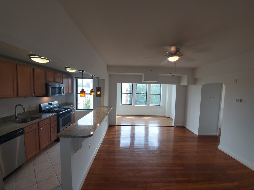 Delightful one-bedroom apartment with parking available June 2026 -- 700 sqft unit in Columbia Heights/Petworth in a secure building with convenient access to transportation, dining, nightlife, and amenities. One dedicated on-site parking space included. THE UNIT: This handsome 700sqft unit in Columbia Heights/Petworth is updated, in a secure building, and has access to just about every convenience you could need. The unit itself boasts hardwood floors, stainless steel kitchen appliances with granite counters, and a marble bathroom vanity. Southern exposure with tons of windows for an abundance of natural light. Open-concept layout that's ideal for both relaxing and entertaining, with a den/sunroom that can easily double as an office. Two enormous storage closets IN-UNIT provide plenty of room for all your stuff. The bedroom's wall-wide closets provide ample clothing storage for two people. Central air-conditioning and a ceiling fan in each room will keep you cool. The home comes equipped with washer/dryer in-unit, dishwasher, extra-wide refrigerator/freezer with ice maker, gas range/oven, and a built-in microwave. Thick walls provide sound insulation for both you and your neighbors' privacy. One parking space on-site is included. THE AREA: Great location. Make your commute easy with both the Columbia Heights and Petworth metro stations a quick walk away, along with a bus route right outside your door on 14th street. Quick access to Rock Creek Parkway and Beach Drive for car commuters. With a Walkscore of 93, multiple gourmet dining options are within a one-block radius (Little Coco's, Mezcalero, and several others), and those seeking nightlife and bars have plenty of options on the block (Red Derby, Lyman's Tavern, Artemis). Plenty of places with outdoor seating to grab a bite or a drink. If you feel like leaving this little oasis on 14th street, all the fun of Upshur Street, 11th street and Mt. Pleasant are all about a 10-minute walk away. Multiple grocery stores in walking distance (Safeway, Yes! Market). Right outside your front door is a family-owned corner mart/coffee/sandwich shop for basic conveniences. Columbia Heights has a Target, dry cleaners, gym, and multiple other conveniences. The building backs up to Rock Creek Park for lazing about in the grass or quickly accessing various running trails. THE BUILDING: The building itself has secure entry along with a secure package office. Optional bike storage for a small monthly fee. Full-time staff are on-site and available to help with every day needs. Two elevators make moving-in and daily life easy. The building is pet-friendly. Water, sewer, and trash services included in rent. Renter pays electricity/gas/internet. This home is managed by an accessible and communicative owner dedicated to providing a positive and comfortable living experience. Tours beginning May 8th.