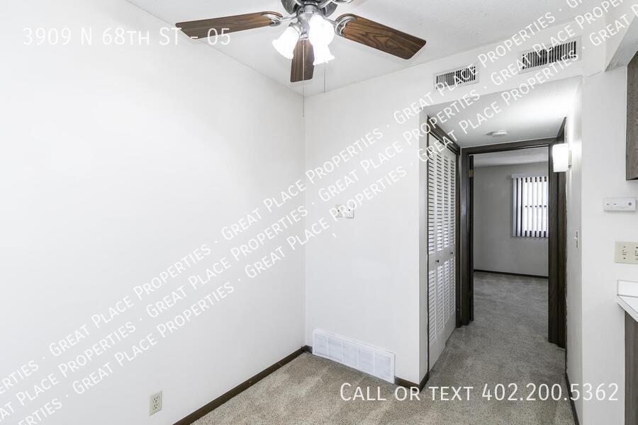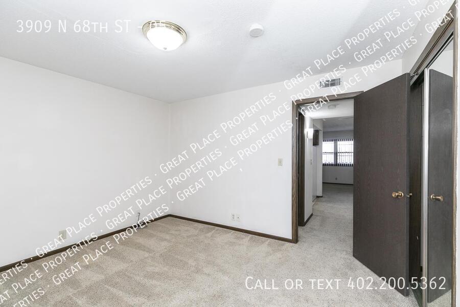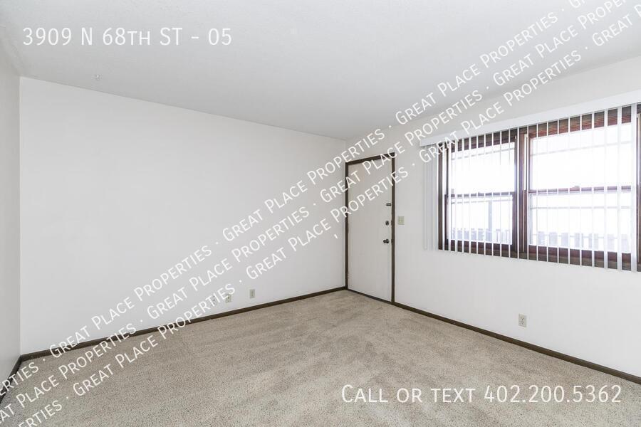 This one bedroom apartment at 3909 N 68th Street is located near the Historic Havelock Neighborhood. The kitchen is complete with dishwasher, electric range, oven, and refrigerator. There is a dining area large enough for a table and chairs. The bathroom has a tub and shower combination and a nice size vanity with storage. The bedroom is big enough for a larger bed and has two closets with side by side mirrored doors. There is a parking lot west of the building. Coin laundry is on site and very convenient extra storage lockers allow you to keep garage-type items packed away. NO SMOKING ALLOWED. Cats allowed* One-Time Pet Fee: $250 Monthly Pet Rent: $50 limit of two cats HEAT AND HOT WATER PAID BY OWNER. *The actual unit may be different than the one shown.