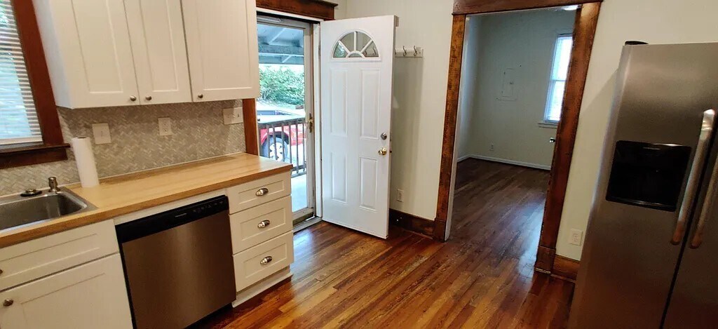 Beautiful, renovated 1940's home in Sylvan Heights. 900 Square foot home. High Ceilings, large front porch, huge property. Hardwood floors. Updated kitchen with new fridge, stove, dishwasher, and garbage disposal. Renovated bathroom with clawfoot tub, pedestal sink, and washer and dryer. Large bedroom with large closet. Second bedroom with closet as well. Back porch as well. Paved driveway. Off street parking. Has security system in place. Lawn care provided with the property. Pets ok. $700 cleaning/ damage deposit. $2100 month rent. $55 application fee per person.