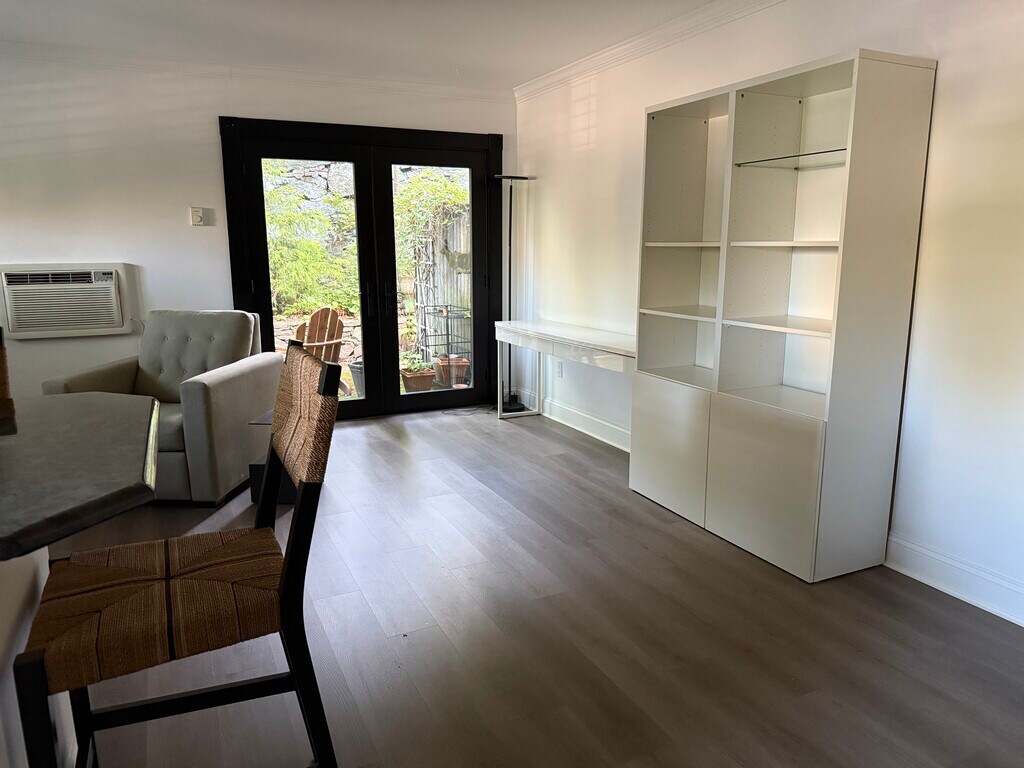 Exceptionally rare, furnished East Side apartment in an ideal location one block from Brown, one block from RISD, and two blocks from the pedestrian bridge to downtown. Trader Joe's, India Point Park, and the Alpert School of Medicine are all within easy walking distance. A recently installed Pella French door opens to a private garden with a brick patio, stone wall, and cedar privacy fence. Recently updated kitchen with Samsung induction stove, dishwasher, and refrigerator. Kitchen has granite counters, maple counters, and stainless steel sink. Recently renovated bathroom with tile shower, Waterworks appointments, and a Toto toilet. Newly installed floor in main room and kitchen. A space in a private parking lot off Williams Street is included. The apartment also has on-site laundry facilities.