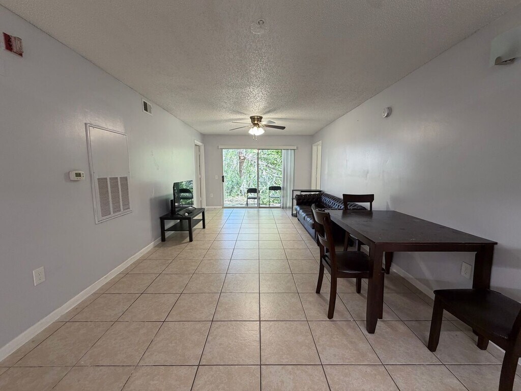 Welcome to the Beautiful 4/4 Condo in University Terrace, located in the vibrant city of Gainesville, FL just minutes from the University of Florida and Shands. This ground-floor condo boasts four spacious bedrooms with a mounted television, laptop desk, mini two-door fridge, and an en-suite for added convenience. The open floor plan is accentuated by laminate flooring throughout, giving the space a sleek and modern feel. The kitchen is a chef's dream, equipped with stainless steel appliances, granite countertops, and a breakfast bar for casual dining. The condo is fully furnished and comes with a host of amenities, including cable-ready rooms, ceiling fans, Wi-Fi, and a dishwasher. The unit also includes a washer/dryer, central air conditioning, and central heating for your comfort. The absence of carpet and stairs makes maintenance a breeze. Step outside to your patio or take a dip in the community pool. Pest control is included, and a community dumpster is available for your convenience. Community is on a direct bus route. No Pets. A few minutes to reach the local YouFit gym, Peach Valley Cafe, or Gainesville's favorites in Butler Plaza.