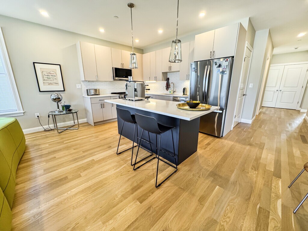 Welcome to Waverly Row, an exclusive new condo collection where contemporary elegance meets everyday comfort. Designed for those who appreciate both style and substance, this expansive four-bedroom, three-bath residence offers a rare opportunity to rent new construction in one of Greater Boston's most connected locations. Sunlight pours through oversized windows, illuminating a beautifully proportioned floor plan crafted for modern living. The open-concept design seamlessly integrates the living, dining, and kitchen spaces—creating an inviting setting for both intimate evenings and sophisticated entertaining. At the heart of the home, the chef's kitchen is a statement in refined functionality. Quartz countertops, an impressive center island, stainless steel appliances, and custom designer cabinetry come together in a space that is as striking as it is practical. Retreat to spa-inspired bathrooms and enjoy spacious walk-in closets, in-unit laundry, and central A/C for year-round comfort. A dedicated home office provides flexible space ideal for remote work, a home gym, or additional storage. Two deeded parking spaces are included—one EV charging ready! Perfectly positioned near Boston Landing, Harvard University, and the scenic Charles River, with convenient access to the Massachusetts Turnpike, fine dining, boutique shopping, and commuter rail connections, Waverly Row offers both tranquility and connectivity.